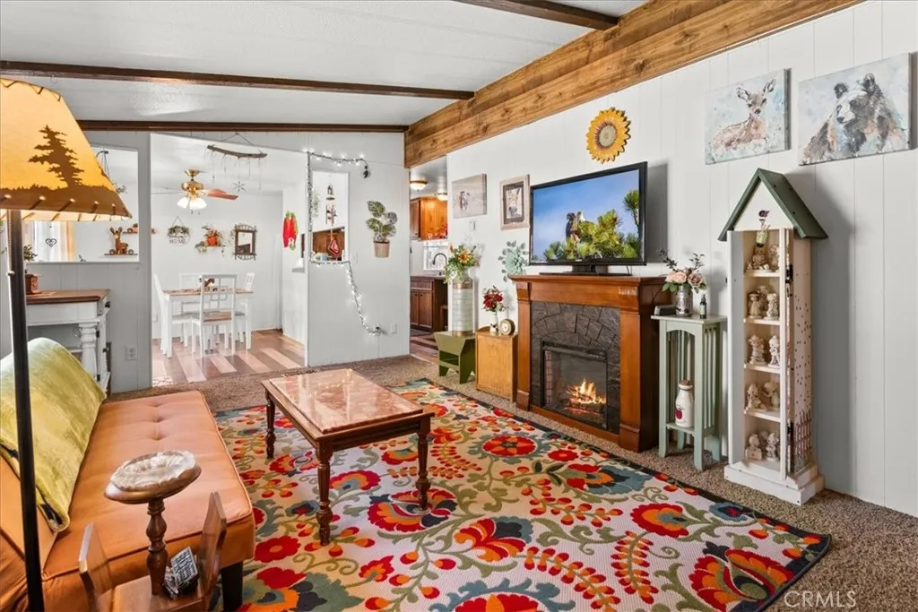 Own the Land & the Lifestyle in Big Bear! Welcome to your modern mountain sanctuary in the highly coveted Whispering Pines. Unlike many parks, here you own the land, providing long-term value and peace of mind. This 3-bedroom, 2-bath doublewide has been thoughtfully updated with stylish barn doors, a cozy electric fireplace, and fresh flooring and paint throughout. The clean, bright interior features a separate dining room that opens directly onto a private deck—ideal for crisp mountain mornings. The property offers a new water heater and rare outdoor space, including fenced front and rear yards, plus a storage shed. Because the home backs up to a common ground easement, you enjoy an extra sense of privacy. Located just 15 minutes from the Lake, the Village, and the slopes. Financing available.