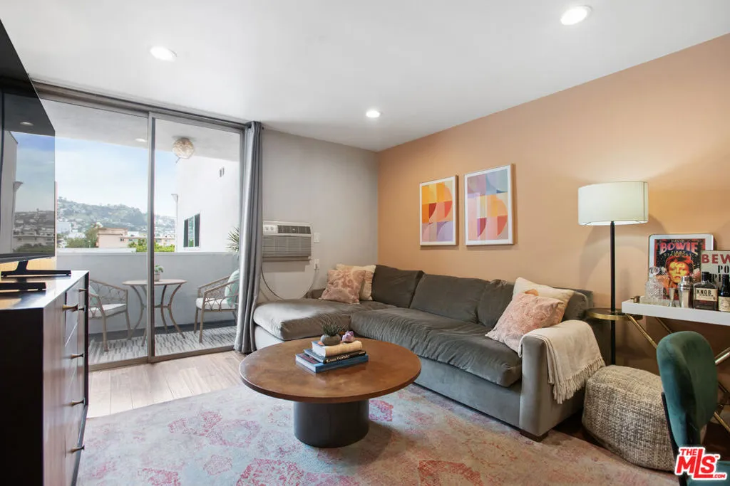 Welcome to your chic top-floor WeHo hideaway. Perched above it all, in one of the most walkable neighborhoods, this updated residence offers effortless living just moments from Melrose Place and the best of WeHo. Bathed in natural light, this Pied-a-Terre features thoughtful updates, curated and smart space design and sweeping views of the Hollywood Hills that elevate everyday living. The layout lives larger than its footprint, with an airy flow and a sense of privacy only a top-floor position can provide. Warm and inviting space with recessed lighting and hardwood floors. A bright private outdoor patio with views of the hills extends your living space outdoors effortlessly and begs for lazy Sundays with coffee on the deck. Updated kitchen with large island and breakfast bar. Chic updated bath and closets galore allow efficiency and utilizing all of its space. A roomy bedroom with sisal flooring and custom wallpaper tempts you to simply stay in and be cozy. Low HOAs and the recently updated building adds further appeal, while the location places you steps from world-class shopping, dining, and coffee in the heart of prime WeHo and the pinnacle of pedestrian lifestyle. A rare opportunity to own a refined retreat in one of Los Angeles' most iconic neighborhoods including Melrose Place, Alfred Coffee, Craig's, Catch, Melrose Design District. Get ready, all the best nights out will start here...