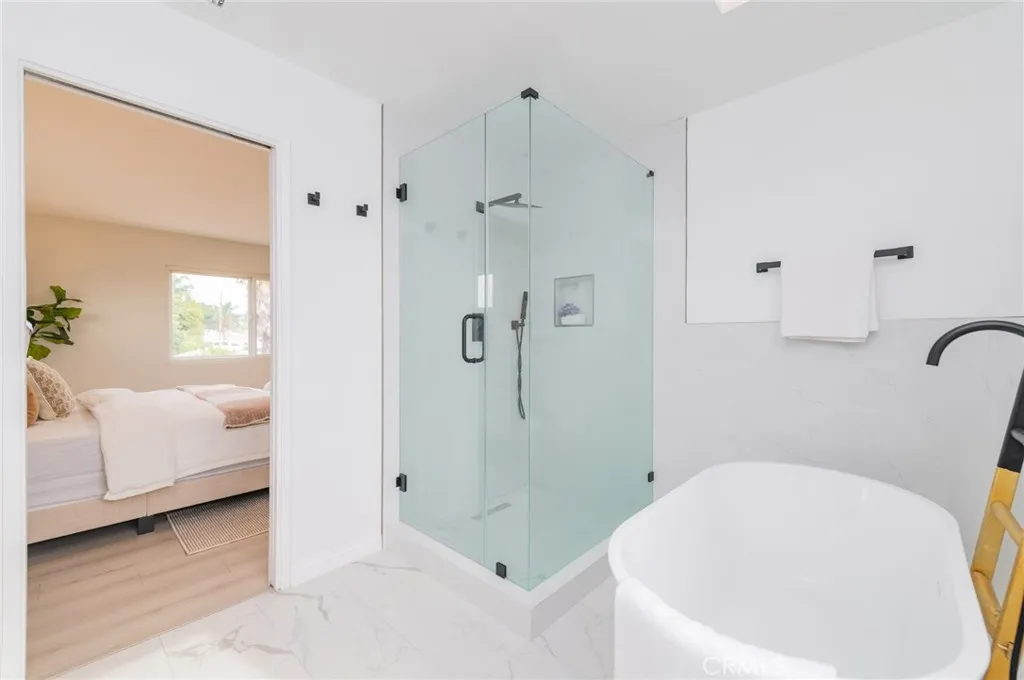 ***BEST VALUE Single Family Residence in West Covina!!*** Welcome to 1334 S Glendora which is a fully upgraded 2-story 4-Bedroom 3-Bath POOL home with tons of amazingly trendy twists. Follow a paved walkway, you are invited to this exceptionally stylish house: Bright & open LIVING ROOM provides a cozy electric FIREPLACE and expansive windows filled with a flood of natural lights and cool breeze. Your family and dear friends will celebrate many special events around the beautifully GOURMET KITCHEN which cheerfully glows with popular white cabinetry, matching soft gray quartz countertops, stainless steel appliances, and peninsula ISLAND and FORMAL DINING AREA next to it. All those strike a tasteful juxtaposition with the earthy waterproof high quality laminated wood flooring throughout this ground level. Entertaining FAMILY ROOM is the next spacious and versatile place for gathering: game watch/play, Karaoke, and tutoring (music, dancing, art studio...). 3 good-sized bedrooms and 2 upgraded bathrooms positioned along the hallway downstairs. 2nd floor was a permitted room addition in year 1991. It became an exquisite and romantic PRIMARY BEDROOM ENSUITE with skylight, huge walk-in closet, bladeless low profile ceiling fan/light, freestanding soaking BATHTUB, frameless glass enclosure for stall shower, dual-sink vanity and enjoyment of mountain views. Touring the house, you will be impressed by the thoughtfully chosen and premium quality of accessories, LED lights, 6-speed bladeless fans in all rooms, matte black faucets, frosted glass closet doors, custom shower doors, premium medicine cabinets, locks, handles.... Its magnificent upgrades or features also included: newly painted interiors & exteriors, double-paned windows, scraped ceilings, repiped COPPER plumbing, NEST thermostat for central AC & heating, and upgraded 200+ amp electrical panel. Sparkling SWIMMING POOL is resurfaced with Pebble-Tec finish, newer filter, and skimmer. Backyard is block walls enclosed & fenced with a driveway to accommodate 3 or more vehicles or RV parking. 2-Car GARAGE is via alley access with (new myQ motor) wrought iron slider gate. ***Location is convenient to all and this house has almost everything you would dream to have!! Hurry it won't last.*** 3-D virtual tour (copy & paste) https://my.matterport.com/show/?m=m1yj7wAmcSG&brand=0 and "List of Special Features and Improvement" are available.