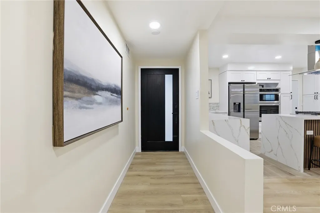 The heart of the home is a brand new European-inspired kitchen designed for both everyday living and entertaining. Clean lines, modern finishes, and a spacious open layout create an airy, light-filled environment. A large statement island that includes a five burner cooktop anchors the space, while offering generous prep and seating — perfect for casual dining or gathering with friends. This luxury kitchen is fully equipped with all energy-efficient appliances (French door refrigerator, dishwasher, cooktop + vent, and microwave) that leads into an open dining area and continues onto a sunken family room with an in-set gas fireplace as a statement piece. This home also offers quartz countertops, all-new electrical, including a 200-amp upgraded panel, recessed lighting throughout, all-new copper plumbing, energy-efficient double-pane windows with UV protection, and brand new luxury wood-inspired flooring that ties the entire home together with a clean, contemporary feel. The luxury bathrooms echo the same elevated design with modern finishes, heated towel racks, rain shower head, and that spa-like appeal.