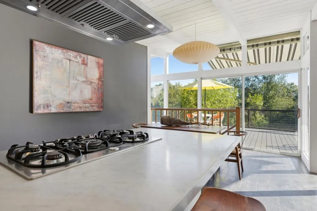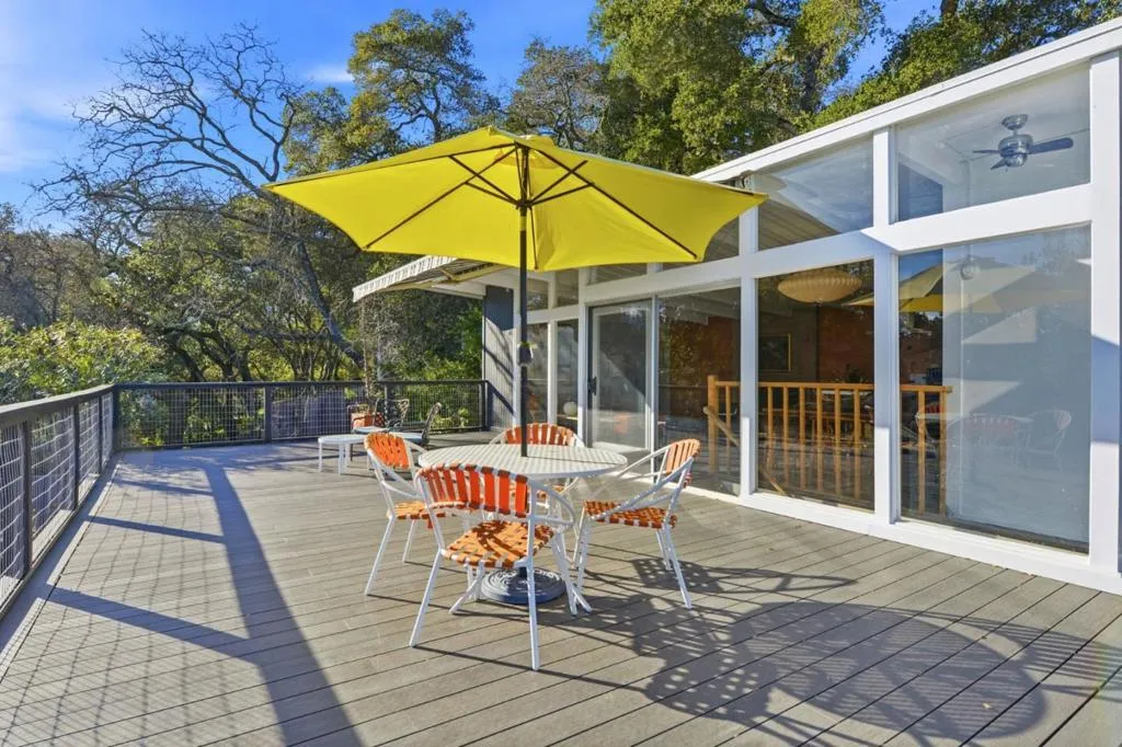 Mid-Century Modern enthusiasts will be delighted by this truly special Woodside retreat. Nestled in The Glens and surrounded by trees, this home sits atop an expansive preserve with access to hiking trails. Built in 1959, the home showcases iconic mid-century design with floor to ceiling glass that fills the upper level with natural light and opens to an expansive 900+ sq ft deck, seamlessly blending indoor-outdoor living and creating an ideal setting for entertaining. The modern kitchen is thoughtfully appointed with Carrara marble countertops and premium stainless steel appliances, including Bertazzoni, Viking, and Fisher & Paykel. The upper level features a spacious living room with fireplace, a motorized awning for the deck along with two bedrooms and a full bath. The lower level offers a versatile family room, generous storage, and carport access. The primary suite provides a peaceful retreat with its own bathroom and direct access to a secluded patio, perfect for relaxing among the natural surroundings. Other features and updates within the last year include a new roof, new deck, new A/C, new landscaping and a new driveway. A rare opportunity to enjoy timeless architecture, privacy, and the beauty of nature.