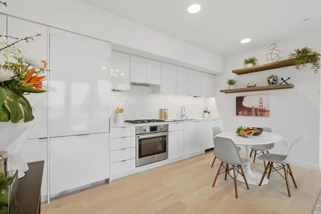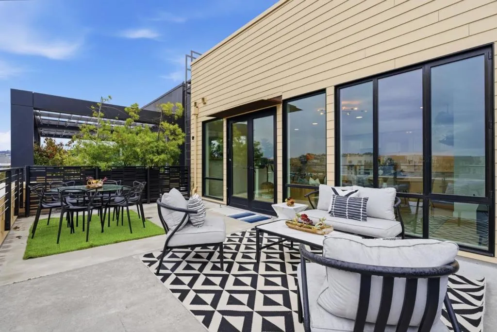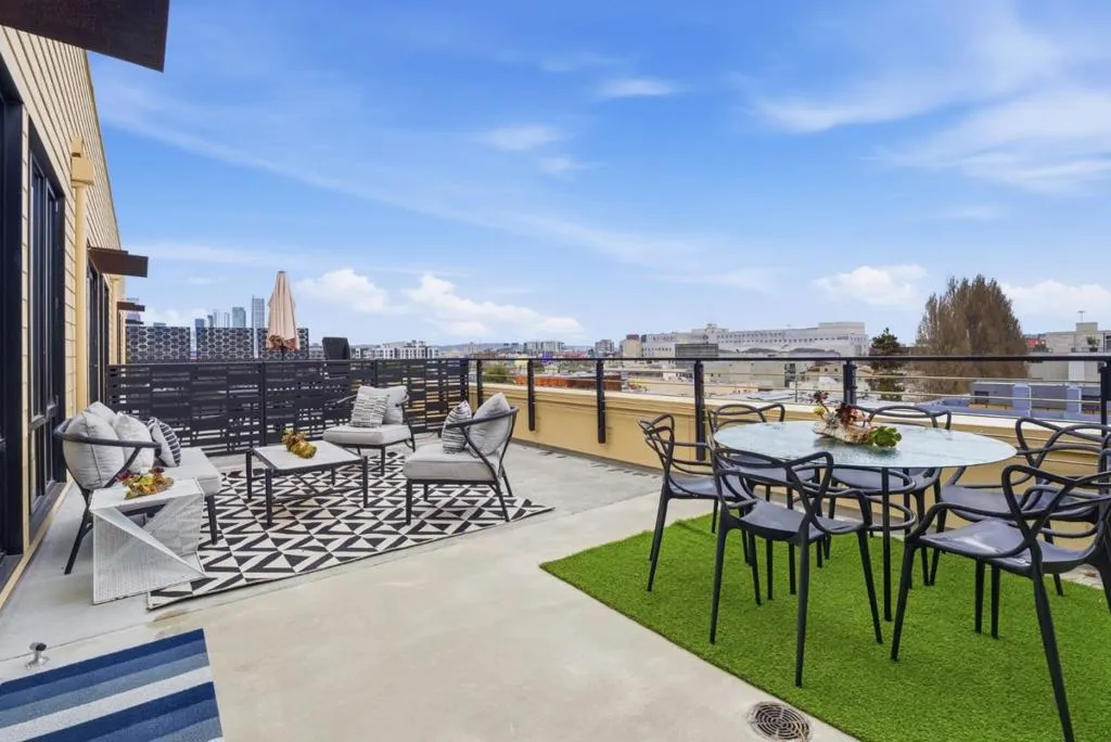 Welcome to the city living in the heart of San Franciscos vibrant SoMa district. This 2-bedroom, 2-bath condo offers 1,089 sq ft of living space, blending modern comfort with unbeatable access to some of the citys best attractions. Step inside to discover wood floors, stylish light fixtures, and a bright, airy living room. The open-concept layout flows seamlessly into the kitchen featuring stainless steel appliances and crisp white cabinetry. The primary suite is a private retreat complete with a stall shower ensuite bath. Enjoy the convenience of in-unit laundry, assigned parking, and a dedicated EV charging space. Relax and unwind on the 400 sqft terrace showcasing stunning views of the Bay Bridge ideal for morning coffee, sunset gatherings, or taking in the sparkle of the city skyline. Youre just a 5-minute walk to major grocery options including Costco, Whole Foods, and Rainbow Grocery, as well as nearby parks. Enjoy easy access to Yerba Buena Gardens, SFMOMA, Union Square, and the Embarcadero waterfront. Spend weekends exploring Golden Gate Park, Twin Peaks, Baker Beach, Pier 39, and Alcatraz. Plus, you're a short stroll to charming Noe Valley, known for its neighborhood cafés, boutiques, and vibrant community feel. This home offers the ultimate San Francisco lifestyle.