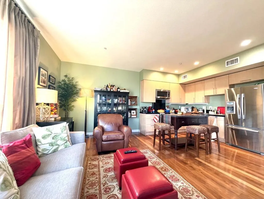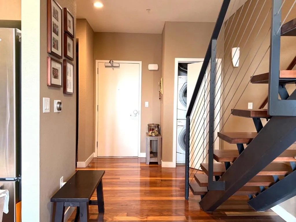 Top floor townhome style one-bedroom corner residence with bonus two parking spots offers a distinctive blend of space, light, and style at 88 Bush Street in the highly desirable Plant 51 community. Set within the iconic former Del Monte packing plant, the home pairs historic industrial architecture with modern luxury living. Enjoy morning views of the eastern foothills and unwind at night with sparkling city lights. The spacious main level features an open-concept layout with stainless steel appliances, a kitchen island, and chic wall finishes, ideal for both everyday living and entertaining. Upstairs, the expansive ensuite bedroom includes a private bath and walk-in closet, creating a true retreat. Community amenities include a 24/7 fitness gym, yoga studio, billiards lounge, BBQ areas, fire pits, fountains, and dog run. Just steps from Diridon Station, Whole Foods, Cahill Park, and SAP Center, with easy access to SJC and Highways 880, 280, and 87