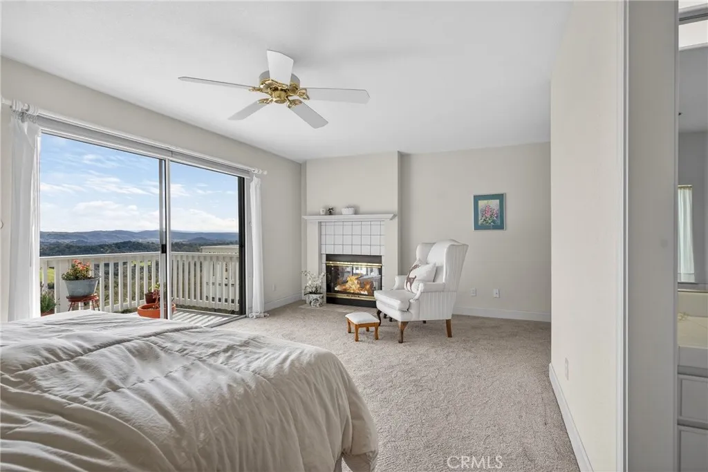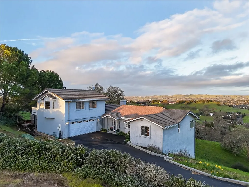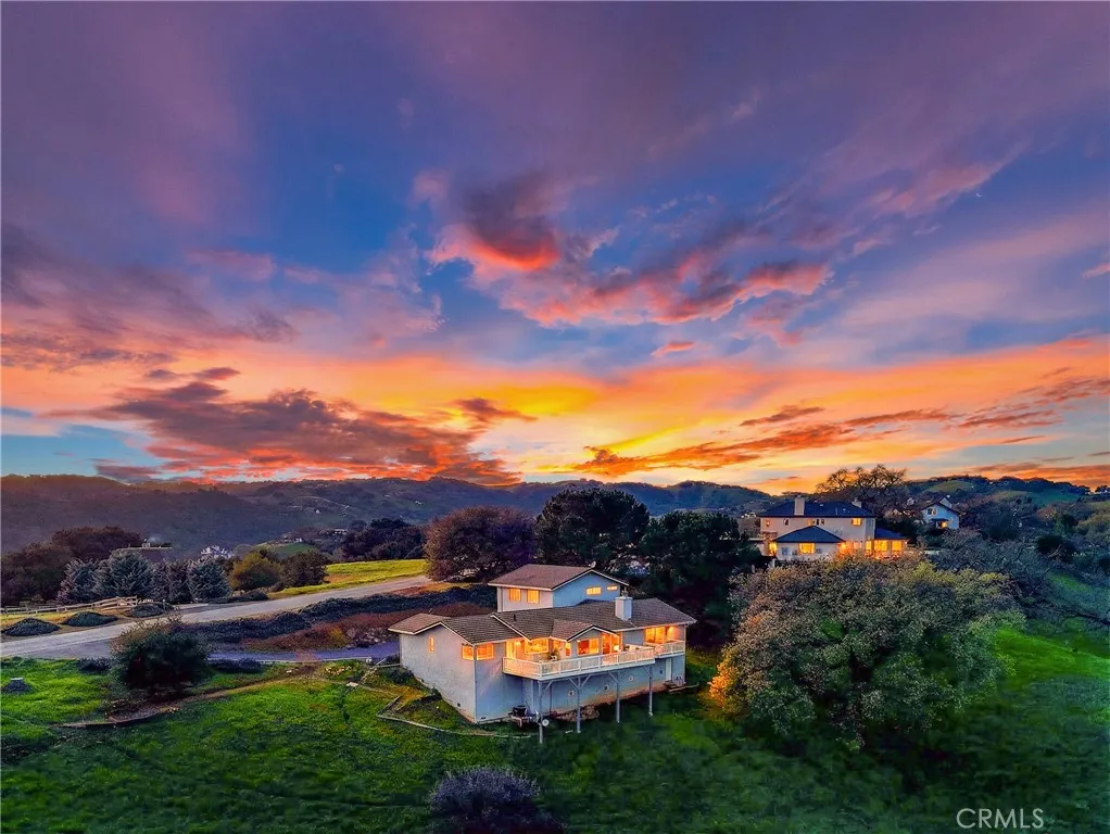 Sweeping panoramic hill and valley views define 11200 Santa Ana Road, a one-owner property positioned to capture the scenery from nearly every angle. Located in the desirable Long Valley Ranches neighborhood, this Central Coast home offers a rare blend of privacy, views, and flexible living spaces in a peaceful hillside setting. The main residence features an open-concept layout with vaulted ceilings and exposed beams, creating a light and airy feel throughout the living and dining areas. Sliding glass doors from both the living room and the primary suite open to upper-level decks, seamlessly blending indoor and outdoor living.The primary suite is privately separated from the additional bedrooms, offering a true retreat. Two secondary bedrooms are located in the opposite wing, one currently used as an office and featuring a glass door that opens directly to the back deck. The kitchen is positioned to enjoy the scenery and includes tile countertops, abundant cabinetry, a center island, and hill views from the kitchen window. The dining area is surrounded by windows, allowing natural light and rolling hills to frame everyday living. A cozy fireplace anchors the main living space, while the primary suite offers its own fireplace and deck access with tranquil views. The primary bathroom includes dual sinks, tile countertops and flooring, a soaking tub beneath tall windows, a walk-in shower with frosted glass enclosure, and built-in storage. A hall bathroom with high ceilings, tile finishes, and natural light connects to the second bedroom. A spacious laundry room offers extensive cabinetry and a generous folding counter. Recent upgrades include the air conditioning system and decking. Adding exceptional flexibility is the fully permitted guest house located above the garage, built in 1995. This private space features an open kitchen flowing into the living area, a center island, hill views from the kitchen window, a spacious bedroom with scenic views, a bathroom with tile flooring and a walk-in shower, new carpet throughout, and its own private deck. The stairway is pre-wired for a chair lift, offering future accessibility. Outdoor living is a highlight, with multiple upper-level view decks, peaceful walking paths, and a charming garden area complete with a greenhouse. With its elevated setting, captivating views, and thoughtfully designed living spaces, 11200 Santa Ana Road offers a peaceful Central Coast lifestyle that feels both private and connected.