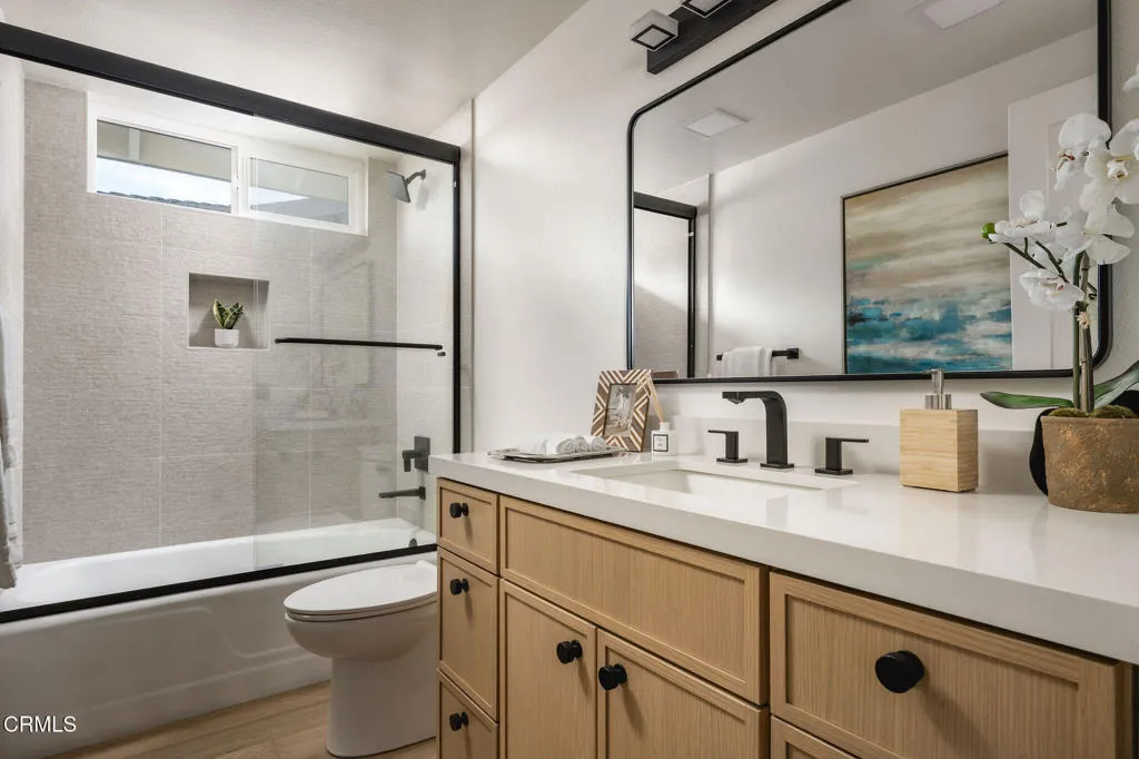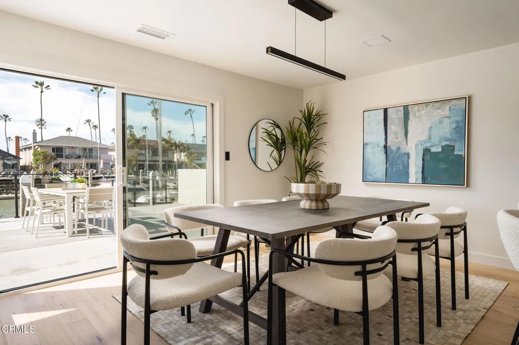 Exceptional waterfront home offering refined coastal living in the heart of the Ventura Keys. This four bedroom, three bath residence plus bonus room has been thoughtfully updated throughout.The first level features an open kitchen, dining, and living area filled with natural light and oriented toward the water. Engineered French oak flooring and rift sawn white oak cabinetry set a warm, modern tone, while new windows and doors create seamless access to the expansive waterside patio. The first level also includes a bedroom and full bath, indoor laundry, and direct access to the attached two car garage.Upstairs, the home offers three additional bedrooms, including the primary suite with an oversized walk in closet. A dedicated bonus room provides flexible space for a home office, media room, or additional lounge area.Outdoor living is a standout feature, with a generous patio and fire pit overlooking the channel and a private 35 foot boat dock. Additional upgrades include a new roof and new HVAC system.The voluntary homeowners association offers access to two private beaches, pickleball courts, a basketball court, and community barbecues. A turnkey waterfront opportunity combining modern updates, generous outdoor space, and one of Ventura's most desirable coastal neighborhoods.