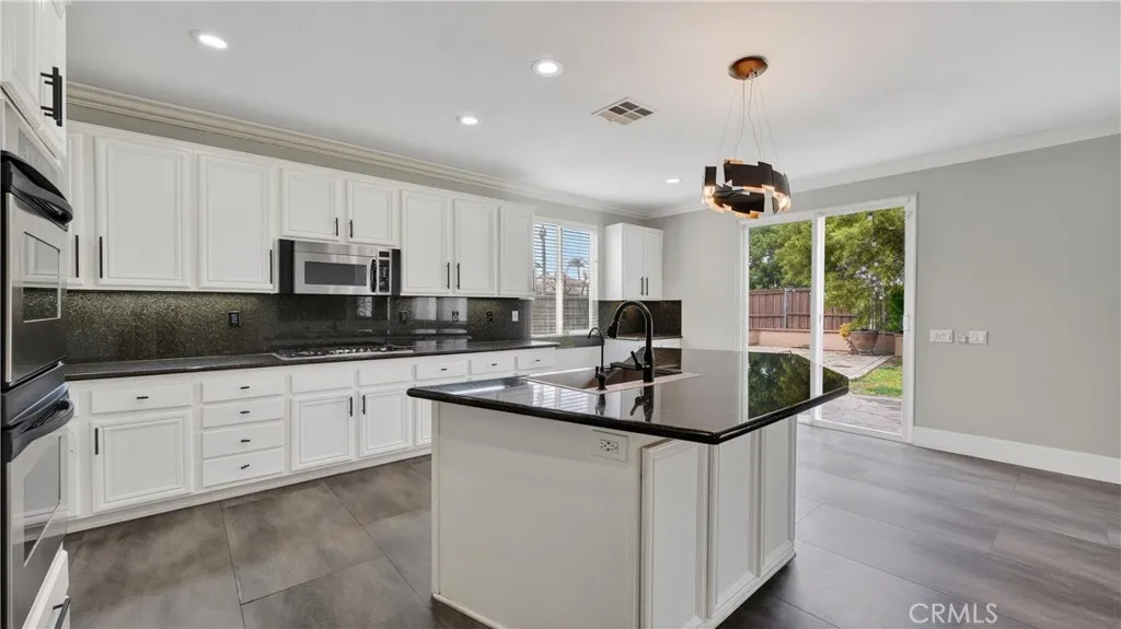 Welcome to 7197 Corona Valley Avenue, a corner lot, turnkey and versatile estate located in the heart of Eastvale’s most vibrant community. Boasting 3,621 square feet of living space, this home is designed for large-scale living and effortless entertaining. The main level features a sophisticated formal living room with soaring vaulted ceilings, a formal dining room with direct access to a butler's pantry, and a chef-inspired kitchen. The kitchen boasts a large island with bar-style seating, perfect for morning coffee or evening gatherings. With an abundance of storage, vast counter space, and an infusion of natural light, this heart of the home opens directly into a massive family room anchored by a cozy stacked-stone fireplace. Additionally, the main floor offers a sprawling game room or office that provides the perfect opportunity to be converted into a 6th bedroom with a full bathroom nearby. Upstairs, you will find five generous bedrooms and three full bathrooms. The primary retreat offers a spa-like ensuite with dual vanities, a modern freestanding tub, and dual walk-in closets. Down the hall, two junior bedrooms share a Jack-and-Jill bathroom. On the opposite side of the home, you will find two more junior bedrooms, a full hall bathroom, and a dedicated laundry room with a spacious linen closet. One of the most unique features of this property is the incredible 4-car tandem garage—an ideal space for a home gym, workshop, or home-based business. Step outside to a private backyard designed for weekend fun. The grounds feature a fruitful lemon tree and a convenient enclosed dog run. Located just minutes from Eastvale Gateway, Costco, and top-rated schools including Clara Barton Elementary and Eleanor Roosevelt High, with easy access to the 15, 60, and 91 freeways. Take a sneak peek at the 3D virtual tour below!