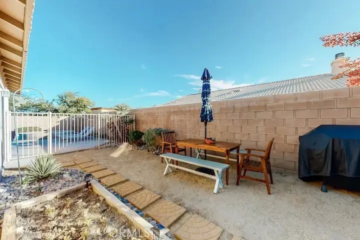 Welcome to paradise! Located very close to Coachella Festival grounds, about 10-minutes walk or a really short, direct drive of less than a mile! In its quiet cul-de-sac less, this desert oasis is a sure bet for your extended retreat. This 3 bedrooms/2 bathrooms home can sleep up to 8 guests. The 2-car garage can be used for equipment storage, and the wide driveway can easily accommodate 3 large vehicles. Completely furnished and detailed with all you need for a fabulous stay, this sunlit home presents a pristine interior with a full kitchen with stainless steel appliances and an intimate living area for movie nights. The kitchen is equipped with a toaster oven/air fryer, rice cooker, waffle maker, blender, and electric wine bottle opener. The outdoor haven of this dog-friendly rental features a fenced yard with a private saltwater pool, spa, a gas grill, and more than one sitting area. The main suite offers a smart TV and access to the pool deck, another one of the bedrooms has a desk and a smart TV, and the third bedroom is fitted with a gaming console with 4,000 video games to choose from! Each bedroom has a memory foam mattress with both firm and soft pillows, as well as charging stations. Family-friendly perks include a high chair, books, and board games. Offered at: Short-term in APRIL : $9,000/month with $3,000 deposit Long term starting on May 1st: $3,500/month with $3,500 deposit Other terms and lengths of stays can be available. Call agent at (310) 5000 6979. Available to move in starting on April 6th.