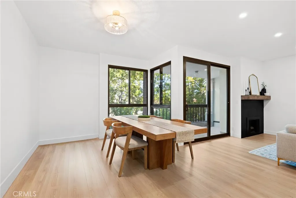 A dramatic double-door entry opens to a spacious foyer, revealing interiors defined by light and refined finishes. High ceilings, fresh new paint, chandelier accents, and recessed lighting amplify the airy layout, while McMillan luxury white oak laminate floors brighten the space and create a wider, more open feel. Newly installed designer light fixtures throughout elevate the home with curated lighting that enhances both ambiance and architectural detail. Floor-to-ceiling windows flood the living areas with natural light, creating a warm and tranquil atmosphere. Step out onto the balcony from the living room and enjoy peaceful tree-lined views.