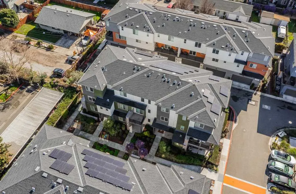 Beautiful 2020 built town home style condo.Nicely updated -move in condition.NW facing ample natural light through out. 2 large bedrooms with attached bathrooms.Den/Office/maybe 3rd bedroom down stairs.Finished 2 car attached garage with EV outlet-lots of visitor parking.Balcony on the 2nd floor. Amazing large kitchen with quartz counter tops -newer appliances -Hardwood flooring.The primary suite includes a spacious walk in closet.The smart home includes wireless internet readiness, dual zone A/C and heating. Seller has updated Blinds through out and very tastefully decorated.Hardly lived in home.Close to Golf course, shops, restaurants, freeway, BART.The laundry room is conveniently located on the 3rd floor with washer and dryer.Located in the sought after Prime at SOHAY community.