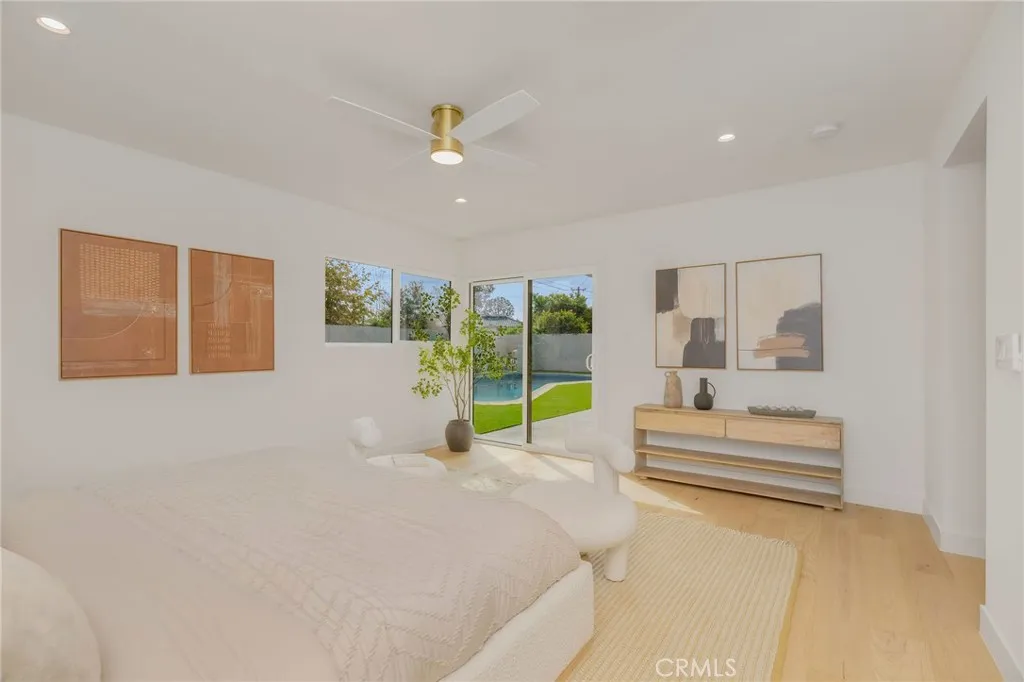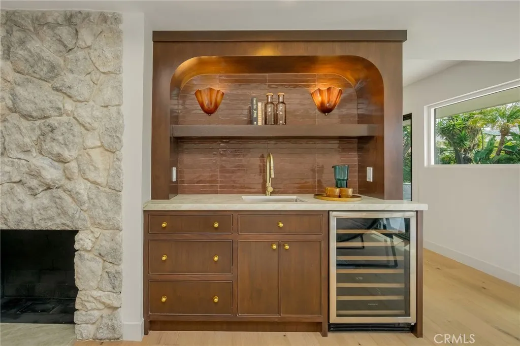 6150 Wooster Avenue is a beautifully remodeled single-level midcentury home in desirable Ladera Heights, blending timeless architectural design with modern upgrades. Light-filled interiors showcase dramatic curved ceilings, a curved floor-to-ceiling glass dining alcove, a sculptural dual stone fireplace serving both living and family rooms, and a stylish wet bar that enhances the home’s entertaining appeal. The remodeled kitchen features premium appliances, refined finishes, and a spacious center island that opens seamlessly to the main living areas. The primary suite offers a walk-in closet and spa-inspired bath with dual vanities, soaking tub, glass-enclosed shower, and custom tilework. Additional bedrooms offer flexibility for guests, a home office, or growing households. Expansive bi-fold doors open to a private backyard with pool and modern landscaping, creating seamless indoor–outdoor flow. An attached three-car garage offers direct access and ample parking.