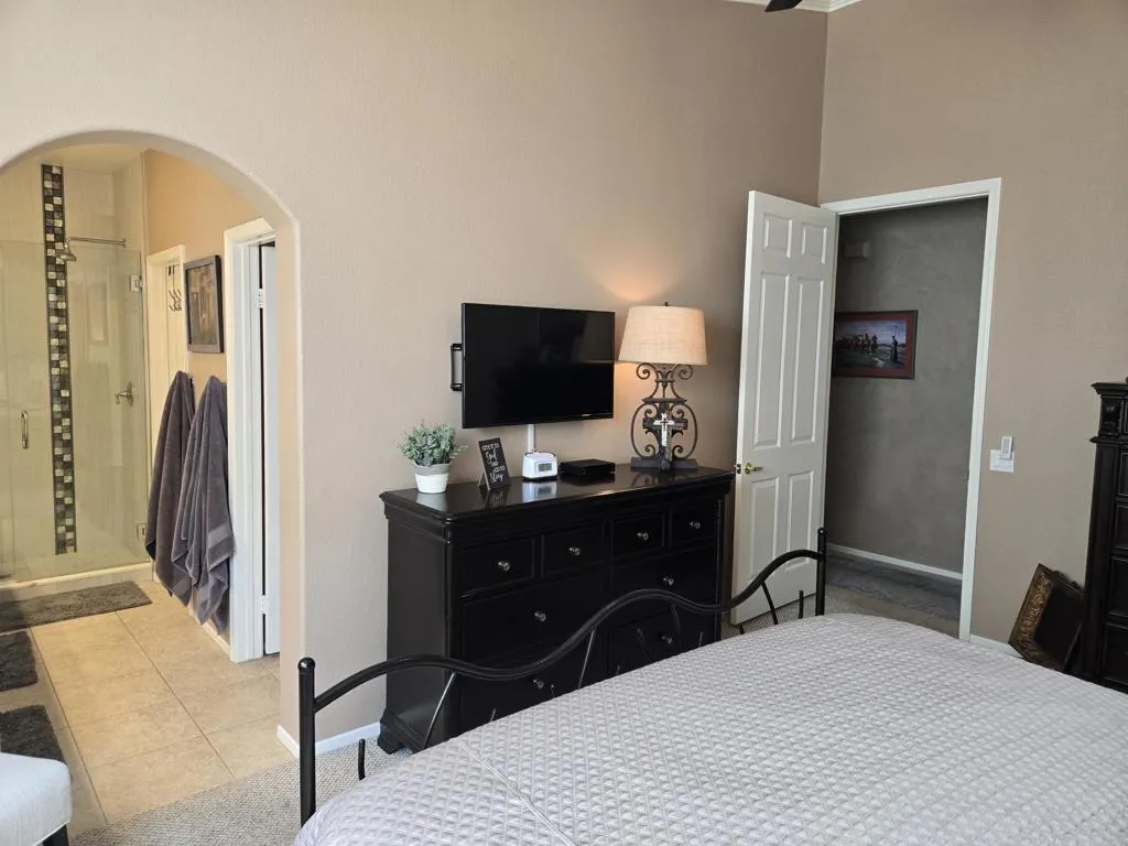 SPECTACULAR POOL/SPA VILLA WITH WIDE-OPEN VIEWS. Highly sought after ST. ANDREWS MODEL completely renovated. Beautiful spot for relaxing on your patio, in the pool or spa, after a day of golf or exploring. This 3 bedroom and 2.5 bath villa has an open family room kitchen with beautiful granite tile countertops, painted cabinets and center island. Three sided fire place divides the family room and living room. This home has crown molding and extensive use of tile floors. Carpet in bedrooms. Fabulous golf course views! Monthly Ground Rent is $139.62 - Land lease thru 2069. HOA DUES INCLUDE: 2 DVR or HD Cable boxes and service, High Speed Internet, grounds maintained to your door by HOA ground maintenance crew, outside pest control when requested, outside water, (you pay only for inside water). Gated community with 24 hour guard gate access, membership to Health and Fitness Center, Tennis, Bocce Ball, Pickleball. Discounts and preferred tee-times for owners at the Desert Princess 27-hole PGA Championship golf course, no initiation fees, rated among the best in the valley by GOLF DIGEST. This quiet community is away from the noise yet minutes from everything that is in Palm Springs; restaurants, shopping, casinos, an international airport, the Tramway, Art Museum, Theaters, and the Street Fair.