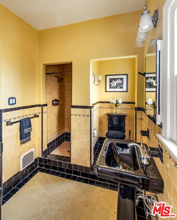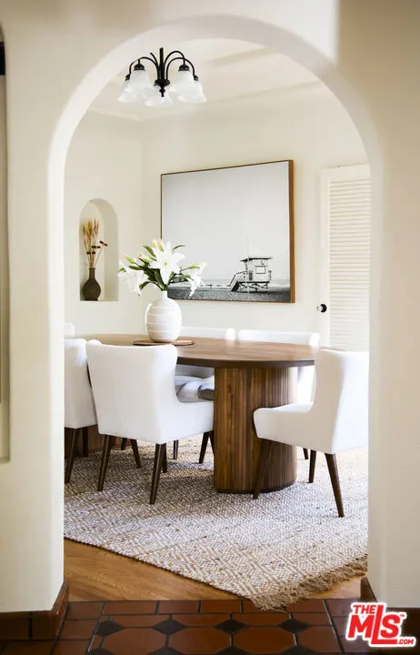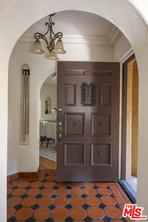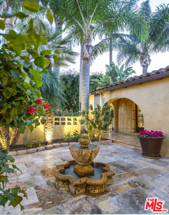 Set on a leafy street in Beverly Grove, this lovingly maintained 1930s Spanish Colonial Revival is ready for its next owner. A gated front courtyard with a fountain introduces a sense of privacy and sanctuary that carries through the interiors. Living spaces have been carefully preserved and thoughtfully refreshed over the years through period details such as barrel-vaulted ceilings, wood beams, arched doorways, inlaid wood and terracotta-style tile floors, plaster walls, and authentic doors and hardware. A welcoming foyer marks the arrival and opens to an elegant sunken living room, anchored by a Batchelder-style fireplace, a large picture window, and French doors opening to the courtyard and serene sounds of the fountain. A formal dining room adjoins the kitchen and breakfast room, where a classic galley layout has been updated with wood cabinetry, quartz countertops, and stainless-steel appliances. An enclosed sunroom/den with a distinctive arched skylight offers flexible use as a home office or quiet retreat. Three bedrooms include a spacious primary with a walk-in cedar closet, complemented by two baths with intricate Art Deco tilework. The property is primed for entertaining both indoors and out, taking guests from the courtyard to the private rear yard where an entertainer's patio surrounded by lush greenery awaits. Additional features include a laundry room, a detached automatic two-car garage, and central AC. All of this is set within one of L.A.'s most walkable and sought-after neighborhoods, moments from Cedars-Sinai, the Beverly Center, and the boutiques and cafs along Robertson and Beverly Boulevardyet removed enough to feel a world away. A rare opportunity to own a move-in-ready, beautifully preserved piece of Los Angeles architectural history in a location that places you at the center of it all.