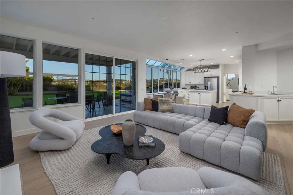 First time on the market set within the prestigious 24hr. Guard-Gated Community of Highland Light Estates. This spectacular upgraded residence is perched on a Premium oversized flat lot with breathtaking canyon vista's, city lights and peek-a-boo ocean views. Offering 4 bedrooms and 3 full sized bathrooms - including a main-level bedroom offering flexibility for guests or office use. Upon entry you will be in awe of the soaring ceilings, floor to ceiling windows and brand new premium wood style vinyl flooring throughout. The grand picture windows bring light and views through the formal living and dining spaces creating a Wow factor as you entertain next to the grand fireplace. The chefs kitchen has Quartz countertops, double ovens, 5 burner island cooktop stove, walk-in pantry and plenty of counter space and storage with the wrap around cabinetry - perfect for entertaining with the adjacent wet bar. The light filled family room has a beautiful fireplace and sliding doors to the incredible .26 acre backyard with multiple lounge and entertaining areas for sunset gatherings of any size or a quiet space to unwind and take in the ocean breezes. The full sports court is complete with a Basketball hoop and half court, next to a putting green with turf grass for a low maintenance environment. Leading up the circular staircase you will find the enormous primary suite with high beamed ceilings, a step-up retreat with a cozy fireplace and an oversized balcony with ocean and Canyon Vistas. The en-suite bath has dual walk-in closets with custom built-in organizers, dual sinks, vanity area, jetted tub and a separate walk-in shower. Across the hall you will find 2 large secondary bedrooms with high ceilings, peek-a-boo ocean views and an adjoining full sized bathroom. Welcome home to San Clemente where the ocean and coastal breezes could be yours.