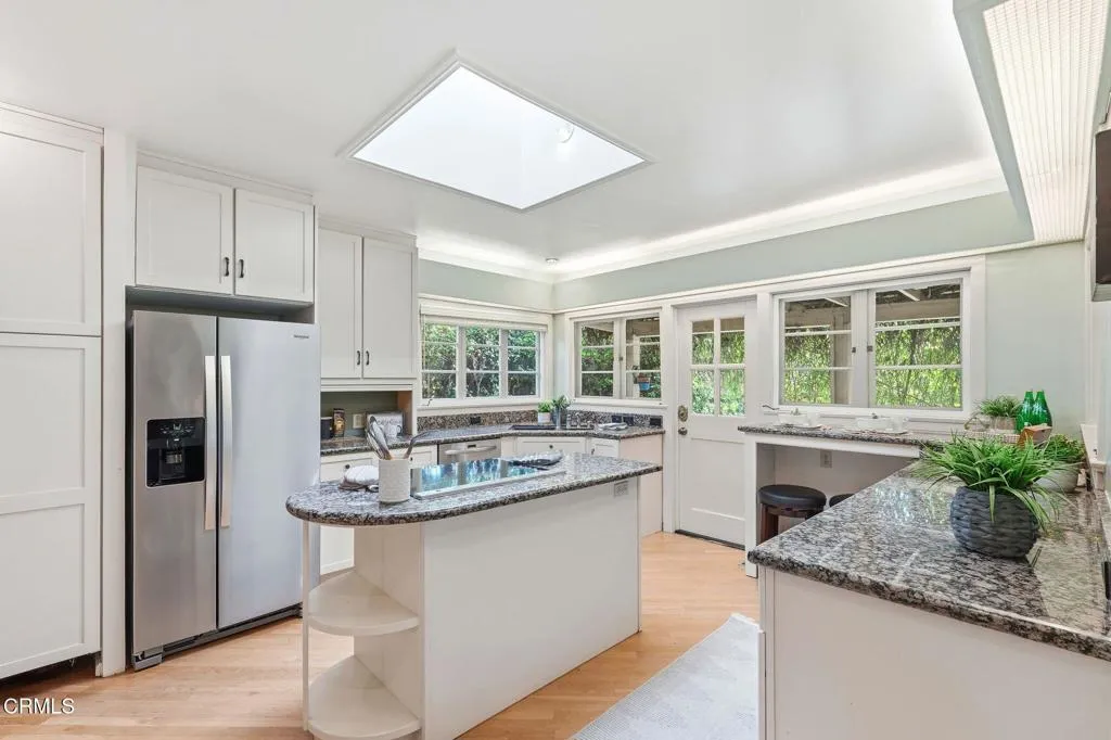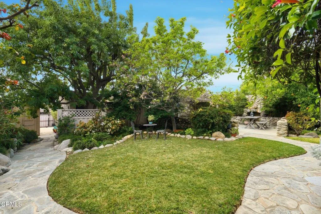 The Guest House -- True Independence, Not an ADUSet on Casa Grande Street -- one of Northeast Pasadena's widest and most beautiful tree-lined streets -- this 1923 single-level residence sits on an expansive 11,404 SF lot in the North Pasadena Heights Landmark District with a fully separate 573 SF guest house. The guest house is completely independent with its own kitchen, bathroom, separate driveway, private entrance, and dedicated parking. This isn't an ADU -- it's a self-contained home, ideal for family, guests, a creative workspace, or rental income.Calling all gardeners -- this one was made for you. The previous owners poured years of love into these grounds, and it shows. A winding flagstone path cuts through cascading azaleas, blooming magnolias, and mature shade trees to a recessed arched entry with French doors. Stone-bordered garden beds, river rock accents, and lush layered plantings wrap the entire lot in color and texture. A permitted garden shed gives you a proper place to store tools and supplies. This is award-winning landscaping on an 11,404 SF lot -- the kind of outdoor space you simply don't find anymore.The 1,863 SF main home opens to a living room with coved ceilings, refinished red oak hardwood floors, and a striking Batchelder tile fireplace -- hand-glazed terra cotta with decorative reliefs that define Pasadena's Arts & Crafts legacy. The formal dining room seats ten beneath a wrought iron chandelier with garden views through every window.A sun-filled family room with board-and-batten paneling, skylights, track lighting, and built-in bookshelves opens directly to the back patio -- seamless indoor-outdoor living. The kitchen features granite countertops, a center island with cooktop, white shaker cabinetry, stainless appliances, and a skylight that fills the room with natural light.Two bedrooms, 13/4 baths, and two built-in offices -- one easily convertible to a third bedroom -- complete the circular floor plan. Updated electrical throughout. Central air conditioning.The backyard is where this property truly sets itself apart. A stone outdoor fireplace anchors an al fresco dining area surrounded by fruit trees -- loquat, orange, sapote, and lemon. Manicured lawns, a vine-draped pergola patio, and meandering flagstone paths create the feeling of a private garden retreat. Detached garage with remote door and rolling driveway gate.50-year roof (2011). Three skylights. Minutes to schools, shops, dining, and Metro.