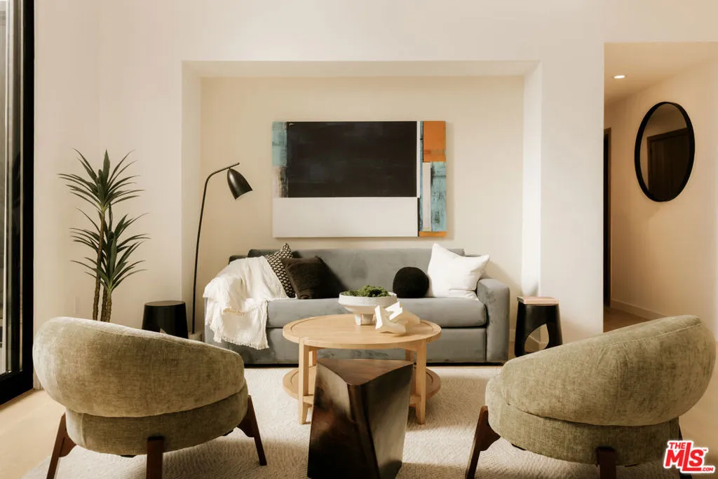 Atria is a collection of sixteen modern residences designed by Mark Rios, FAIA, FASLA, tucked into the hills of Silver Lake, offering a thoughtfully curated take on contemporary California living. Clean architectural lines meet warm, livable interiors, creating homes that feel both elevated and effortlessly comfortable. Enter Residence 103 through a private green courtyard, one of just three in the development. Expansive sliding glass doors open to a dramatic great room with double-height ceilings and a mezzanine level perfect for a family room or office. Abundant natural light fills the space, highlighting white oak finishes that bring warmth to the contemporary design. The chef's kitchen is outfitted with a full suite of integrated appliances concealed within paneled cabinetry, complemented by refined quartz countertops and a generous peninsula.The primary suite features a spacious walk-through closet and a spa-inspired bathroom with dual vanities, a freestanding tub, and a walk-in shower. Two additional bedrooms, a laundry closet, and a powder room complete the residence. Each home also includes two dedicated parking spaces and a private storage unit. Positioned in the heart of Silver Lake, Atria offers easy access to some of Los Angeles' most sought-after lifestyle destinations. Moments from Griffith Park and the Silver Lake Reservoir, residents enjoy a rare blend of outdoor recreation and urban convenience. The highly walkable neighborhood is filled with beloved cafes, restaurants, and boutiques, with Sunset Junction, Atwater Village, Glendale, Downtown Los Angeles, and Hollywood just a short drive away. Seller to provide credits toward closing costs and interest rate buydown!