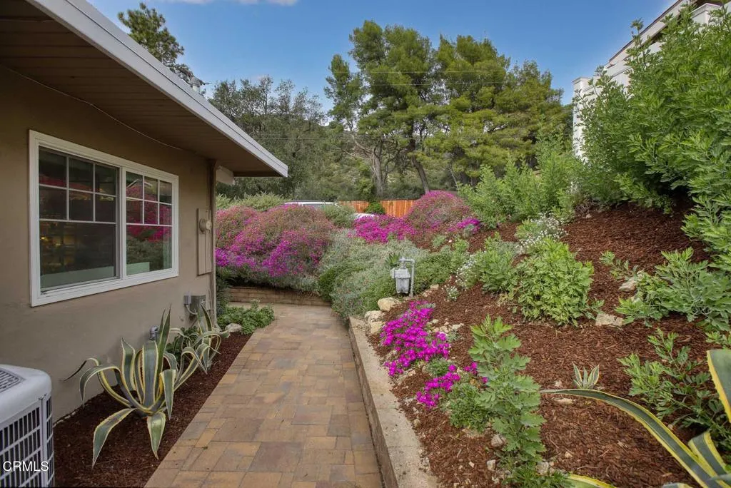 First time on the market in 17 years! This expanded Webster Wiley architect-designed property with courtyard entrance and exposed beams throughout is located at the end of a quiet cul-de-sac in Briggs Terrace, offering 4 bedrooms, a bonus room, and 3 bathrooms. Residents enjoy the benefits of a natural setting while remaining only minutes from local amenities and major freeways. This well-maintained residence has been thoughtfully updated over the years, including the kitchen, primary bedroom, all bathrooms, windows, pool resurfacing and coping, fencing, front and rear landscaping, paving stone driveway and pool decking, and upstairs ductless HVAC units. The kitchen features a breakfast bar plus stainless-steel appliances, including a Fisher & Paykel refrigerator and a 6-burner gas cooktop with double oven. It is centrally located between the dining room, with a cozy fireplace, and the spacious living room. All three rooms overlook the backyard, which includes a refreshing pool, a large deck for relaxing, and a covered patio--perfect for indoor/outdoor entertaining and dining alfresco. There are 3 bedrooms downstairs, 2 sharing a bathroom, and the third has a private bathroom and a walk-in closet. Upstairs, you'll find the primary bedroom and bathroom, a walk-in closet, and a relaxing balcony with mountain views. Additionally, there is a 200 sq ft bonus room with vaulted ceilings, suitable as a family room, home office, or gym. The low-maintenance yard features synthetic grass, multiple fruit trees, including lemon, lime, tangerine, fig, and kumquat, plus a practice golf hitting area. Adding the award-winning schools, this is a truly wonderful home in a great location, not to be missed!