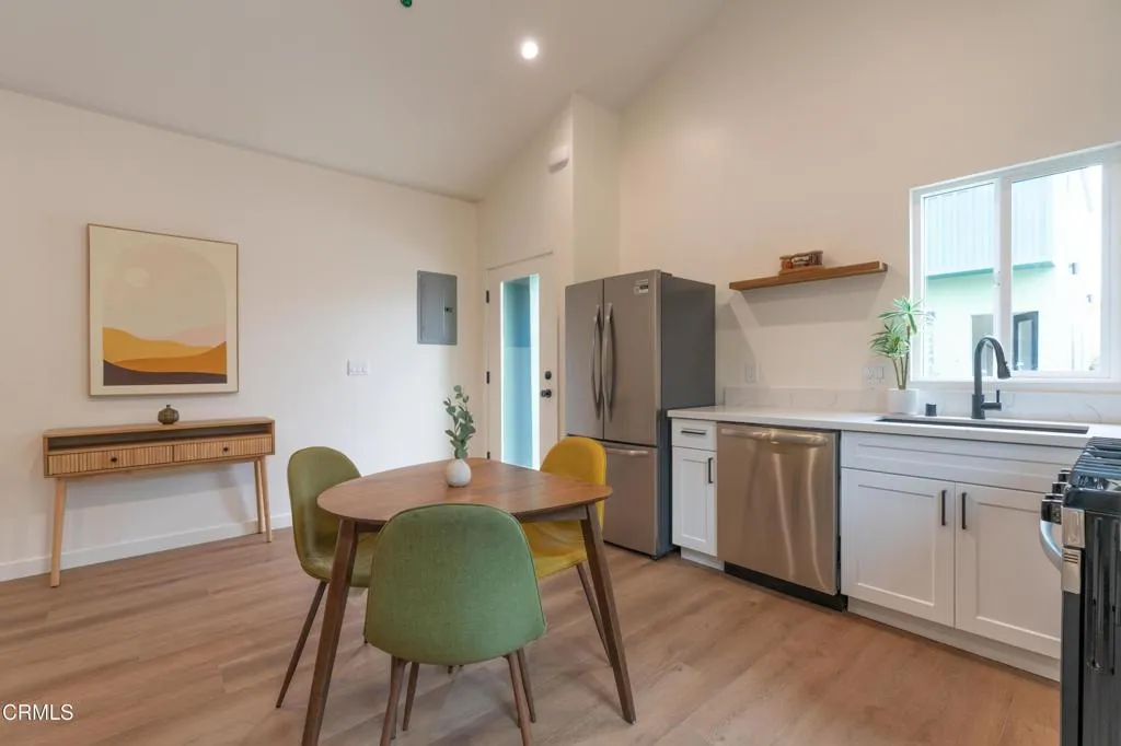 Thoughtful architecture meets iconic Eastside energy in one of Los Angeles' most creative and rapidly evolving neighborhoods. Be the first to live in this ground-up new construction 2-bedroom, 2-bath residence. A design forward nod to Frogtown's artistic spirit.Inside the aesthetic softens into a warm, organic palette layered with natural textures, clean lines, and abundant light. Vaulted ceilings elevate the open concept living space, creating volume and architectural interest while enhancing the airy, inviting feel. Wide plank wood flooring grounds the interiors with warmth and continuity.The kitchen blends modern simplicity with subtle character, featuring shaker cabinetry, quartz countertops, stainless steel appliances, matte black fixtures, and thoughtfully placed windows that draw in natural light from multiple angles. The seamless flow from kitchen to dining to living makes the layout feel both intimate for everyday living and ideal for entertaining.Step outside to a private patio offering functional outdoor space, while dedicated parking adds convenience. Framed by a scenic hillside backdrop and positioned near the river, you're moments from Frogtown's beloved coffee shops, breweries, art studios, and the LA River bike path.This is modern Eastside living. Architectural, light-filled, and thoughtfully executed at a price point that simply makes sense.