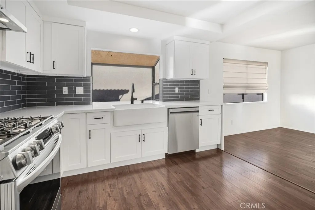 This exquisite 3-bedroom, 2.5-bathroom split-level townhome, fully renovated in 2024 with premium finishes, offers a perfect blend of contemporary style and comfort. Featuring all-new interior paint and appliances—including a washer and dryer—this residence boasts luxury vinyl flooring and recessed lighting throughout, creating a bright and welcoming ambiance. Natural light fills the space through numerous windows, complementing the stylish double-door entry that leads to a convenient powder bath. Up one flight of stairs, the expansive living room is highlighted by a sleek corner gas fireplace and sliding glass doors that open to a private balcony, perfect for relaxing or entertaining. The sophisticated kitchen is a chef’s dream, showcasing white shaker cabinets, a chic gray subway tile backsplash, and stunning white quartz countertops with waterfall edges. Stainless-steel appliances include a 6-burner gas stove with a range hood, dishwasher, oversized refrigerator, and a farmhouse sink with a picturesque garden window. A grand picture window enhances the stairwell, beautifully framed by a striking chandelier. The upper level offers three spacious bedrooms, with two sharing a beautifully updated ¾ bathroom featuring a large walk-in shower, while the elegant primary suite includes a modern full bathroom. The attached 2-car garage provides direct access and a dedicated laundry area. This well-maintained private community offers a resort-style pool and spa, and is located in the highly-rated Las Virgenes School District. Enjoy the convenience of being just a short distance to popular spots such as yoga studios, cycling and Pilates classes, Erewhon, Philz Coffee, Starbucks, and an array of upscale shopping and dining destinations. With easy access to the 101 freeway and just a short drive to Malibu, this townhome offers the perfect blend of suburban tranquility and urban convenience.