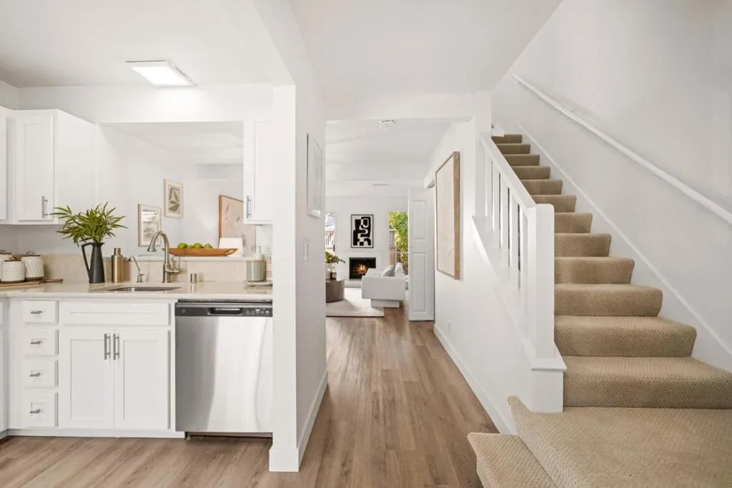 Two-story townhome style condo with no neighbors above or below! Nestled in the coveted Vineyards of Saratoga community, this charming home offers a peaceful, private retreat in an ideal Saratoga location. Step inside to find a light-filled living space with impressive high ceilings, creating an open and airy atmosphere. The functional layout offers plenty of living space downstairs, including a powder room and both front and back yards. The updated kitchen features stainless steel appliances and modern cabinets. Upstairs, the bedrooms are bathed in natural light and feature vaulted ceilings and a private balcony. An updated bathroom completes the upper level. Additional features include central heating, in-unit washer and dryer, and a detached one-car garage. The Vineyards of Saratoga community offers resort-style amenities, including two swimming pools, a spa, a clubhouse with a fitness room, and beautiful walking paths. The location is unbeatable, with easy access to Hwy 85 and just minutes away from Saratoga's charming downtown, shopping, dining, and highly rated schools, including Prospect High (9/10). Discover a blend of comfort, style, and location in this lovingly maintained home, your gateway to refined Silicon Valley living.