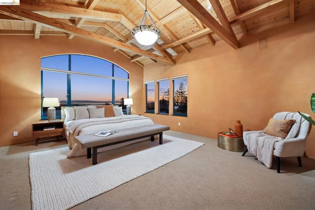 Architectural Brilliance in the Claremont Knolls Experience the artistry of renowned architect David Wilson at 150 Vicente Rd, Berkeley*. This stunning home is a showcase of modern elegance, where high-end finishes meet thoughtful design. The dramatic living room, with its soaring ceilings, sets the tone for sophisticated living, while a stylish office loft offers the perfect blend of function and flair. Take in sweeping views of San Francisco and the Bay from nearly every room—an ever-changing backdrop that elevates daily life. The home’s prime location in the lower Claremont Knolls ensures easy access without compromising on scenic beauty. A standout feature is the sculptural main staircase, which evokes the curves of the Guggenheim and serves as an artistic centerpiece to the home. Every detail—from contemporary fixtures to luxurious materials—has been meticulously curated for modern comfort and timeless appeal. This is more than a home—it’s a design-forward sanctuary in one of the East Bay's most coveted neighborhoods. Don’t miss the rare opportunity to own this architectural gem.