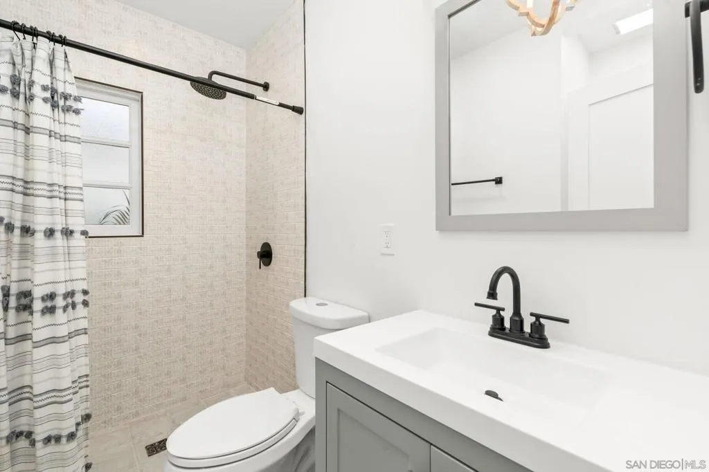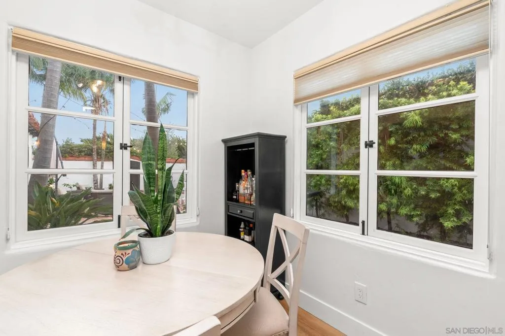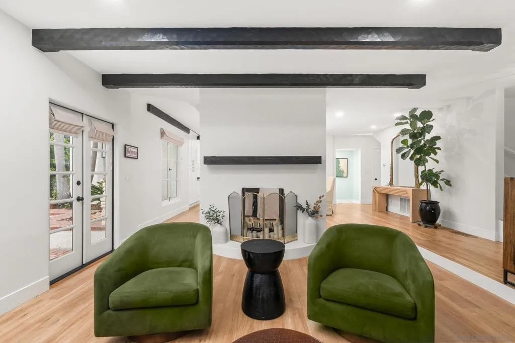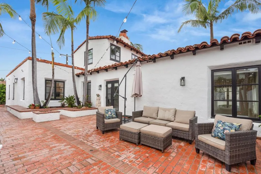 This breathtaking Loma Portal residence seamlessly blends understated minimalist elegance with timeless Spanish character. Set on an expansive 7,000 sq. ft. lot and just moments from Liberty Station and top-rated schools, the home offers an exceptional coastal lifestyle. A sun-drenched formal living room is framed by a dramatic arched picture window set against a tiled accent wall, while rich wood flooring and exposed beam ceilings create warmth and architectural distinction. A striking see-through fireplace anchors the space and transitions seamlessly into the beautifully updated chef’s kitchen, appointed with stainless steel appliances, an impressive eight-burner gas range, custom cabinetry, and a classic designer backsplash, crafted for both elevated entertaining and everyday living. Designed for comfort and flexibility, the home features three en-suite bedrooms, including a serene primary retreat on the main level complete with its own fireplace, custom walk-in closet, spa-inspired bath with tiled walk-in shower, and sliding doors opening to a peacefully landscaped private yard. Upstairs, an additional suite and a secondary bedroom with a generous view deck capture sweeping vistas of the Coronado Bridge, ocean glimpses, and city skyline. A gated courtyard enhances the indoor-outdoor lifestyle with a built-in pizza oven and fire pit, while the attached casita, featuring its own entrance, living room, kitchenette, bedroom, and full bath offers ideal accommodations for guests, office, rental or multigenerational living. Additional highlights include central air conditioning and heating, and an extended driveway accommodating up to four vehicles plus an attached 2-car garage with storage, all just minutes from Sunset Cliffs, beaches, dining, and freeway access. Don't miss the opportunity to experience the unparalleled blend of style, charm, and convenience that this home offers.