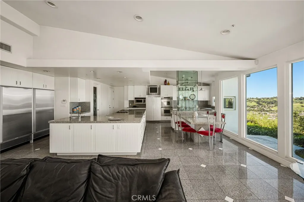 Welcome to 2820 Shadow Canyon Drive, an extraordinary hilltop estate within the prestigious 24-hour guard-gated community of The Country in Diamond Bar. Showcasing sweeping city lights and San Gabriel Mountain views, this private retreat offers elegance, scale, and breathtaking scenery from nearly every vantage point. Spanning 8,264 square feet on an expansive 1.69-acre lot, this custom residence embodies refined luxury living. A long private driveway leads to a stately entrance where soaring ceilings, abundant natural light, and dramatic floor-to-ceiling windows create an immediate sense of grandeur. The main family room frames spectacular vistas, seamlessly blending indoor and outdoor living. The home features eight spacious bedrooms, including two primary suites—one on each level. The upstairs primary suite is a true sanctuary with dual private balconies, two walk-in closets, dual spa-inspired bathrooms, and panoramic city and mountain views. Two additional junior suites upstairs provide comfort and privacy. On the main level, a second primary suite offers direct pool access, complemented by three additional bedrooms, including another junior suite. Designed for both grand-scale entertaining and everyday living, the residence offers formal living and dining rooms along with multiple family rooms that flow effortlessly to the outdoors. The chef’s kitchen is thoughtfully appointed with a large center island, white lacquer cabinetry, granite countertops, Sub-Zero refrigerator and freezer, Gaggenau fryer, charcoal grill and cooktop with downdraft vent, Dacor double ovens, NuTone built-in food center, breakfast nook, and a generous walk-in pantry. An expansive secondary family room opens directly to the resort-style backyard, creating a seamless indoor-outdoor experience. The grounds feature a sparkling pool and spa, built-in BBQ island, and inviting spaces ideal for entertaining or relaxing against a backdrop of stunning views. Additional highlights include a 7-car garage, Hunter Douglas Silhouette shades, LifeSource whole-house water system, and a 5-zone HVAC system. Residents of The Country enjoy access to a clubhouse, community center, scenic hiking trails, two clay tennis courts, and four pickleball courts. Ideally positioned near both Los Angeles and Orange Counties, this exceptional estate offers privacy, prestige, and unparalleled luxury living.