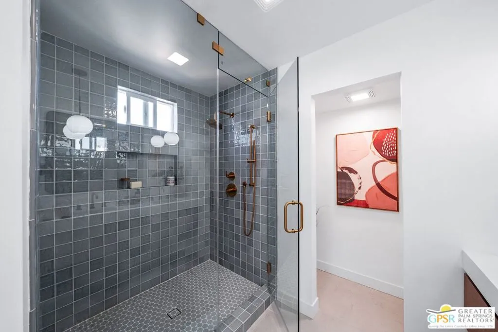 Commanding a panoramic backdrop of Mount San Jacinto, this beautifully reimagined Palm Springs luxury retreat delivers the desert's most sought-after combination: a true private resort setting, dramatic sit-down views, and a rare double-lot opportunity approximately acre of outdoor living, entertaining, and future potential. Renovated from top to bottom with a refined, design-forward palette, the home features engineered white oak flooring and a showpiece great room with soaring vaulted ceilings and white-oak wrapped beams, anchored by a striking fireplace. Walls of glass create an effortless connection to the outdoors, with pool, spa, and mountain views enjoyed right from the living room the quintessential "view-side" experience. At the heart of the home, the chef's kitchen impresses with custom cabinetry, built-in Signature appliances, and an expansive island designed for gathering. A separate dining area and wine bar complete the entertaining flow, all finished with clean lines, warm wood accents, and elevated hardware/lighting. Designed for comfort and privacy, the residence offers three luxe suites plus a fourth bathroom, each finished with spa-level style and designer tile from Bedrosians Tile & Stone. One suite features a true resort-inspired bath with a dedicated shower-and-soaking-tub room, while the remaining baths showcase beautiful walk-in showers crisp, modern, and impeccably detailed. Two suites open directly to the pool deck for seamless indoor-outdoor living; the third suite opens to its own private patio with easy access to the resort yard. Step outside to your own desert oasis: a sparkling heated pool and spa (fully renovated with Pebble Tec finish and new equipment), a bocce ball court, and expansive grounds framed by fresh hardscape and landscape improvements ideal for sun, stars, and unforgettable gatherings. Additional upgrades include multi-zone air conditioning, a custom courtyard entry, custom garage door, EV charging in the garage, and owned solar paid in full (not leased) for modern efficiency. Rare double-lot offering: Two residential lots sold as one offering exceptional flexibility for a future second residence or potential lot split. And for year-round livability, the home's orientation captures the magic of desert light winter sun and bright interiors while keeping the summer months comfortable.