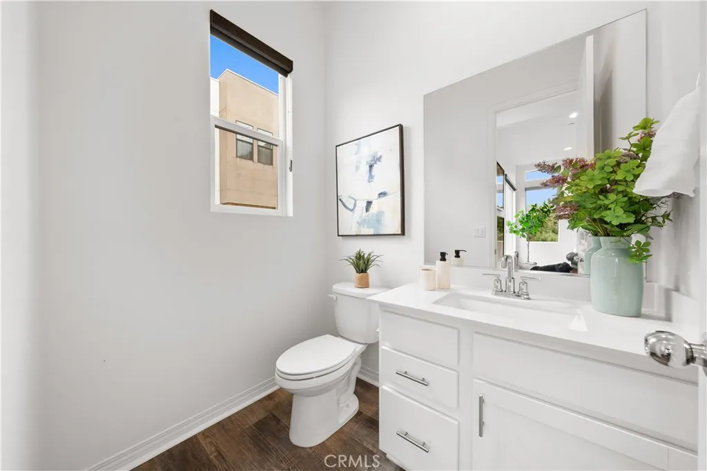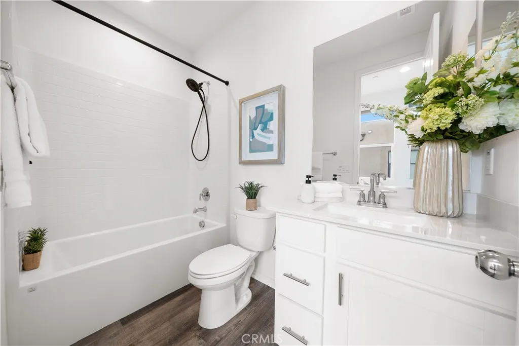 The third level includes two spacious bedroom suites, each with its own en-suite bathroom and walk-in closet, offering both privacy and functionality. A conveniently located laundry area completes the upper floor. As a desirable corner unit, the home benefits from additional windows, enhanced privacy, and excellent natural light throughout the day. The professionally designed front yard includes an irrigation system and solar lighting, creating an attractive and low-maintenance outdoor setting. Equipped with solar panels for improved energy efficiency, residents also enjoy access to Great Park’s extensive amenities, including parks, Olympic-size pools, trails, and community facilities, providing a vibrant and convenient lifestyle in one of Irvine’s most sought-after neighborhoods.