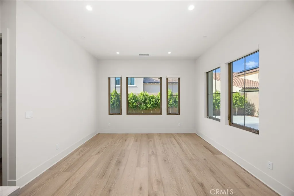 Nestled on a single loaded street within the prestigious gated enclave of The Groves at Orchard Hills, this newer home offers an exceptional blend of privacy, luxury and functionality. Appointed with $300,000 in designer upgrades, this residence features 4 bedrooms, 4.5 baths, with 3,361 sqft living space on a 5,130 sqft lot, presenting avocado orchard view surrounded by nature. Walking through the front door, you’ll pass by the downstairs bedroom and full bath with upgraded shower wall, flooring and floating mirror. Louvre Collection Aged French Oak hardwood throughout the first floor. Spacious living room with high ceiling and cozy fireplace, sliding door to a private and low maintenance backyard with trees, flowers and artificial grass. Highly upgraded gourmet kitchen with a large island, designer color cabinets, quartz countertop with beautiful movement, and selected backsplash. Top-of-the-line appliances like Sub Zero 42'' French door built-in refrigerator, Wolf 48'' Stainless steel 6 burner gas stove with griddle, double oven, microwave, single basin sink, and luxury faucet. Prep kitchen with Wolf stove, sink, custom shelf and glass French door to the yard, better than the model! Dining room with picture window. Upstairs you will find an enclosed loft, perfect for a library/den/family room. Expansive primary bedroom, bathroom with double sinks, free-standing tub, shower room with wall-to-wall tiles, two walk-in closets and storage cabinets. Next, you’ll encounter 2 en-suite guest bedrooms with amazing avocado orchard views, offering relaxation and privacy. One of the guest rooms has a private balcony. The large laundry room is designed to feature a deep sink and ample cabinet storage space. Attached two-car garage with epoxy flooring. Paid off solar. Close to award-winning Tustin schools. Resort-style community amenities include swimming pools, club house, tot lot, barbecue and picnic table, tennis court, basketball court, etc. This house is a must see!