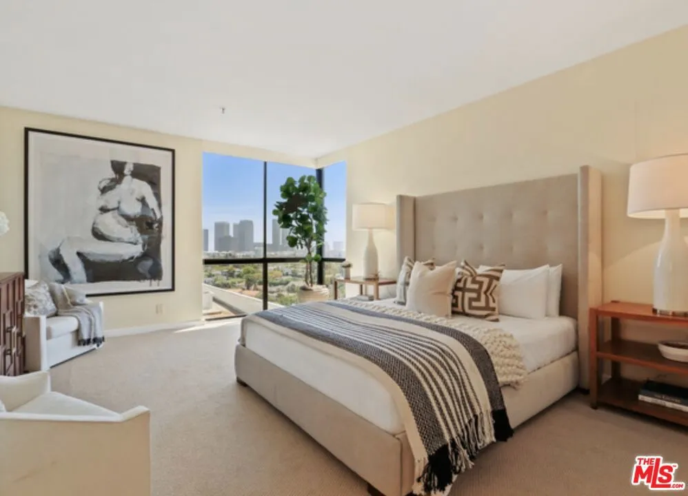Perched high on the 10th floor of the coveted Wilshire Corridor, this refined 3 bedroom, 3.5 bath residence offers an exceptional level of sophistication, scale, and sweeping south-facing city and treetop views. Bathed in natural light, the home captures both southern and eastern exposures, creating luminous interiors and tranquil private retreats. A grand open-concept living and entertaining space is anchored by elegant flooring and expansive windows that frame panoramic skyline vistas. An impressive oversized bar serves as a dramatic focal pointperfect for hosting intimate gatherings or elegant evenings at home. The gourmet kitchen is thoughtfully designed to flow seamlessly into the main living areas, yet offers the flexibility to be closed off for privacy when desiredideal for formal entertaining. A conveniently located laundry unit is discreetly positioned within the kitchen area for everyday ease. Each bedroom is generously proportioned and features its own ensuite bath, providing comfort and privacy. The primary suite offers a serene retreat elevated above the city, complete with a spacious bathroom, dedicated vanity area, generous walk-in closet, and refined finishes throughout. This exceptional residence also includes a dedicated electric vehicle charging station exclusive to the unit, along with private storage space in the parking garage, offering both convenience and practicality. Residents enjoy the full-service amenities of one of the Corridor's premier luxury buildings, including 24-hour security, valet service, doorman, a state-of-the-art fitness center, resort-style pool, and conference room.A rare opportunity to experience elevated, full-service living in one of Los Angeles' most prestigious addresses.