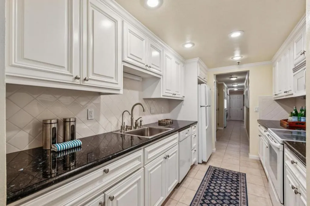 Park Terrace is a thoughtfully designed 13-unit boutique condominium building situated in the Belmont hills. This rare 2BR/2BA end-unit has been beautifully upgraded and meticulously maintained. Additionally, there is no unit above or any common walls. An extremely spacious living room features crown molding, recessed lighting, bamboo flooring and a decorative fireplace. A covered corner balcony provides an area for outdoor enjoyment. Formal dining area with a wet bar and a pendant chandelier. Sparkling remodeled kitchen with raised panel cabinets, blue pearl granite counters, full tile backsplash and white appliances. Large primary bedroom with hardwood flooring, a walk-in closet and plantation shutters. Primary bath with dual vanities and a large, tiled shower. Second bedroom with a custom built-in home office. Adjacent hall bath with a shower over tub. Tiled entry and hallway. Full-size washer & dryer plus substantial closet space. Two-car side-by-side parking in a gated garage. Building amenities include a community room, exercise room, storage room and a rear lawn. Convenient access to Highway 92 and the trails of Water Dog Lake Open Space. Award winning Belmont schools.