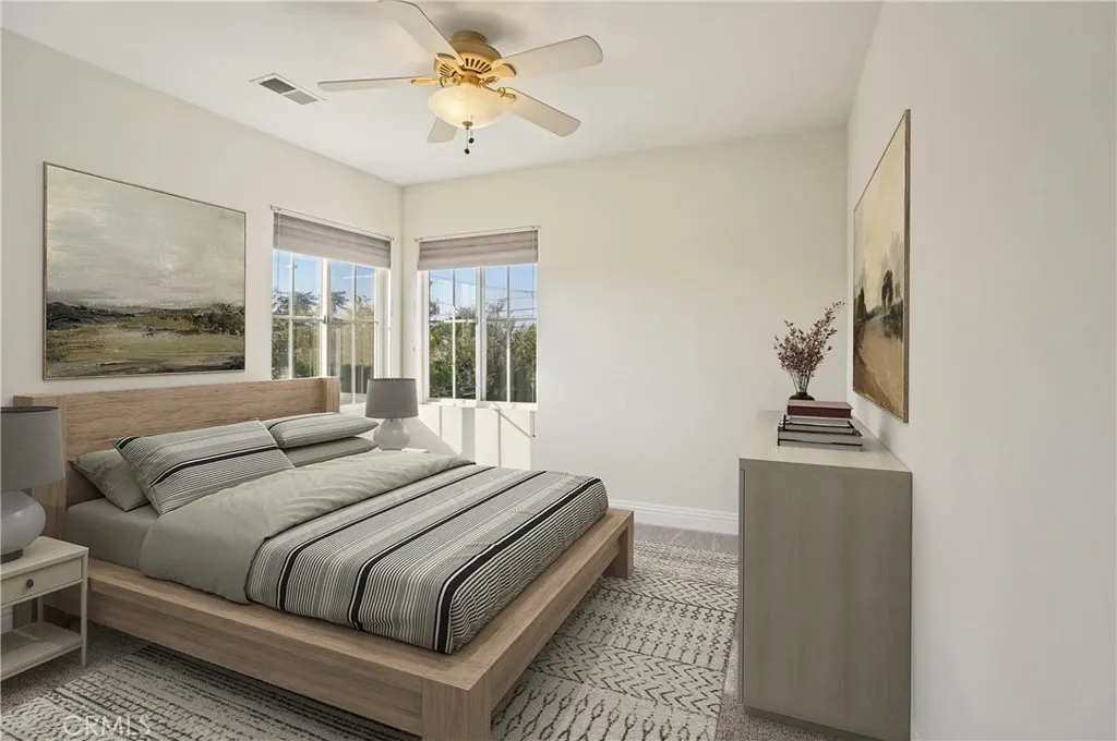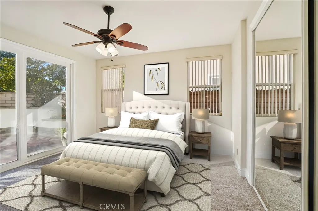 This stunning two-story corner-lot home, built in 2004, offers 3,926 sq. ft. of elegant living on a 7,429 sq. ft. lot. Featuring 5 bedrooms, 4.5 bathrooms, a spacious upstairs loft, and a first-floor office with stylish bamboo flooring, this residence blends warmth and sophistication. Nestled on a peaceful cul-de-sac, it boasts exceptional curb appeal with a beautifully landscaped walkway leading to a welcoming entry. Inside, soaring 20-foot ceilings, stately white pillars, custom porcelain tile flooring, new carpet, and fresh paint create a bright, open atmosphere. Expansive windows with plantation shutters fill the home with natural light. The gourmet kitchen is a chef’s dream, showcasing maple cabinetry, granite countertops, and premium Viking stainless steel appliances, including a six-burner cooktop and double oven. A full-height granite backsplash, large island with storage, and walk-in pantry add beauty and function. A fireplace anchors the adjacent family room that opens to an entertainer’s backyard paradise. The beautifully designed backyard features a flagstone patio with built-in natural gas BBQ, oversized island with seating, three-tier fountain, and built-in speakers to add a musical atmosphere. A separate corner is plumbed and wired for a spa—an opportunity to create your own private retreat beneath the stars. The first floor includes a large bedroom with full bath and patio access—ideal for visitors or multigenerational living—plus a separate office and stylish half bath. Upstairs, the expansive loft provides options as a second office, recreation room, or sixth bedroom. The luxurious primary suite is a serene escape with a spa-inspired bath featuring a walk-in shower, Jacuzzi soaking tub, dual vanities, marble flooring, and two walk-in closets. The large secondary bedrooms feature mirrored closets and either Jack & Jill or shared bathrooms. The upstairs laundry room adds convenience plus built-in cabinetry and sink. Additional highlights include a three-car garage with Tesla charger and extra laundry hookups, tankless water heater, solar panels, whole-house fan, dual-zone AC, and upgraded sound-insulated windows. Located within the top-rated ABC Unified School District—home to Whitney High School—and near Gonsalves Elementary, Carmenita Middle, Cerritos High, multiple parks, Cerritos Town Center, Los Cerritos Mall, & major freeways (5, 91, 605). Don’t miss your chance to make this exceptional property your new home—schedule a tour today!