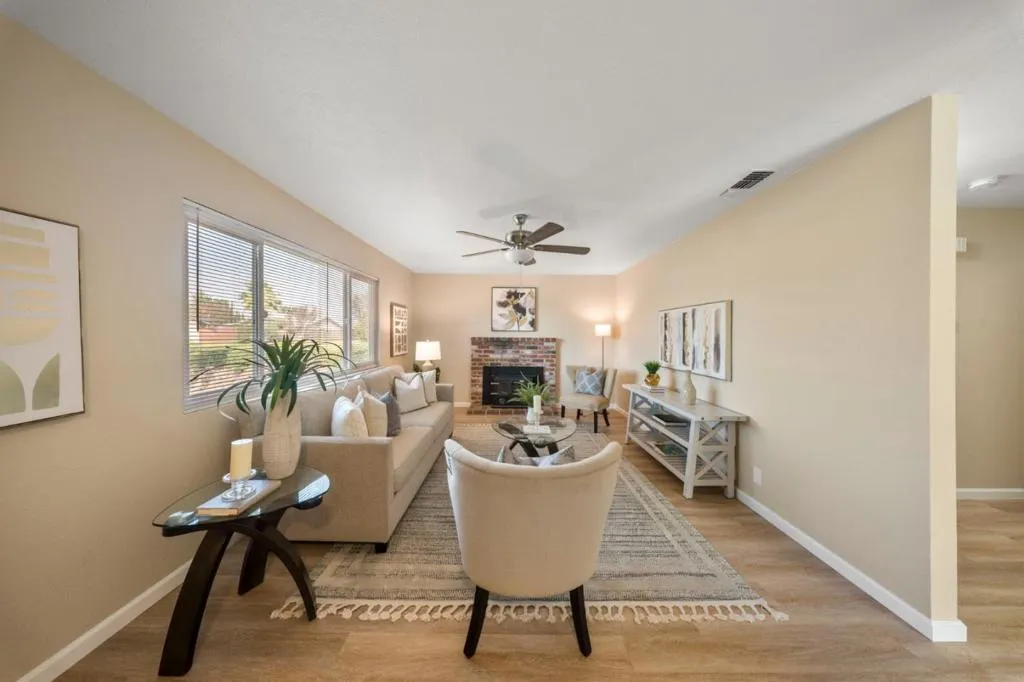 Back on the Market - No fault of the sellers! This beautifully updated 3 bed/ 2 bath home is back on the market after the previou buyers were unable to perform. Their loss is your opportunity! Thoughtfully refreshed throughout, this residence features brand-new flooring, Milgard double pane windows & sliding door, modern soft close cabinetry, fresh paint throughout, updated lighting fixtures, & ceiling fans that create a bright and inviting atmosphere. The efficient layout provides seamless flow for everyday living and entertaining. The kitchen shines with new neutral colored cabinets, a brand new stove and contemporary finishes. It is ready for your personal touch, offering a blank canvas for any culinary enthusiast. The property includes a spacious lot, providing ample outdoor space. Outside, the generous lot offers ample parking space perfect for your RV, boat, or recreational toys. The expansive backyard is a blank canvas ready for your vision whether you dream of creating an outdoor kitchen, garden retreat, play area, or entertaining space. Conveniently located near local schools, parks, shopping, and restaurants, this home blends modern updates with practical amenities. Don't miss the opportunity to make this versatile property your own in the vibrant city of Manteca.