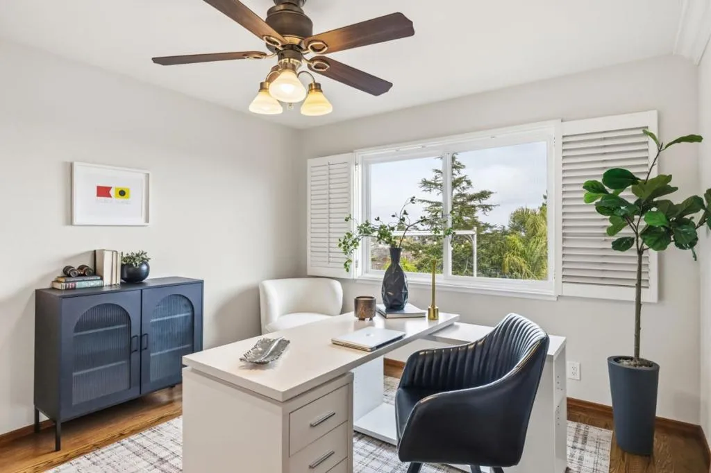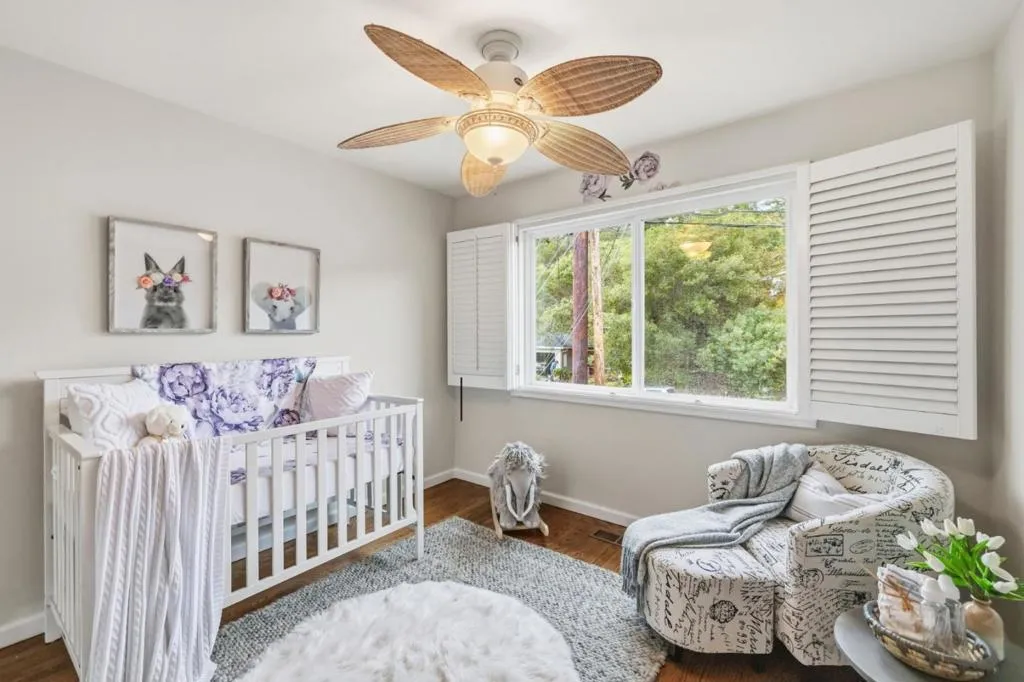 This traditional-style home is on one of the quietest streets in San Carlos. The house has a unique floor plan with 5 bedrooms on the same floor plus a bonus space that can be a 6th bedroom for guests, au pairs, a workout room or whatever fits your lifestyle needs. The kitchen, family room and backyard look out to sweeping views of the bay. The backyard boasts a flat yard space, a water fountain and a large deck for outdoor entertainment or enjoying the incredible vistas. The bright kitchen opens up to a family room and leads to the backyard. This space is perfectly located for indoor and outdoor entertainment. The flow of the interior living spaces are also great for entertaining family and friends. You will find an eat-in kitchen, formal dining room and formal living room that provide the perfect party flow. The primary bedroom has a large sliding glass door to take advantage of the views and opens to an oversized deck to enjoy your morning coffee. The property features solar power. The attached 2-car garage has additional storage and easy access to the downstairs bonus area. This lower living space offers privacy for overnight guests. The property is near hiking trails at Eaton Park and Big Canyon Park, has access to other neighborhood parks and is a great commute location.