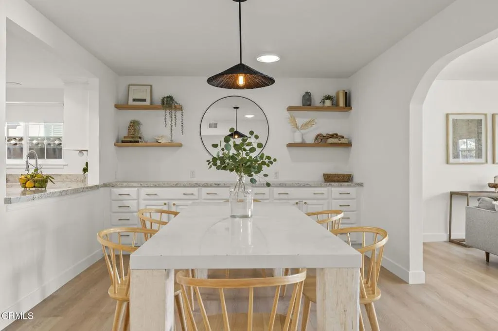 **FULLY FURNISHED and newly renovated, spacious single story home in prime central Ventura neighborhood! All utilities included! 30-day minimum rental lease required. Inquire for longer stay discounts.Located on quiet, and private tree-lined street, this light and bright 4 bedroom, 2 full bath home offers brand new wide plank flooring, and a fantastic open concept floor plan with both a large living & family room that share a dual-sided fireplace. The newly renovated kitchen opens to the formal dining room, and is complete with abundant cabinetry for storage, granite countertops, and new stainless steel appliances. All four bedrooms (including a dedicated work space in one bedroom), are conveniently located down the hall offering new carpet, new paint as well as a large updated guest bath. The primary bedroom features a beautifully renovated ensuite bathroom featuring a brand new dual sink vanity, new walk-in shower, and all new fixtures. Ideal for indoor/outdoor entertaining, slider doors lead out to the backyard offering multiple fruit trees, Weber barbecue, hot tub, storage shed, and large patio for lounging or outside dining. Laundry is conveniently located in the attached 2-car garage, also offering abundant storage. Situated conveniently in a super safe family & pet friendly neighborhood, and just minutes to groceries, great restaurants, parks, hiking trails, multiple schools, hospitals, freeway access, and just a short drive to downtown Ventura's best beaches! This home is a must-see and turn-key for its new guests!