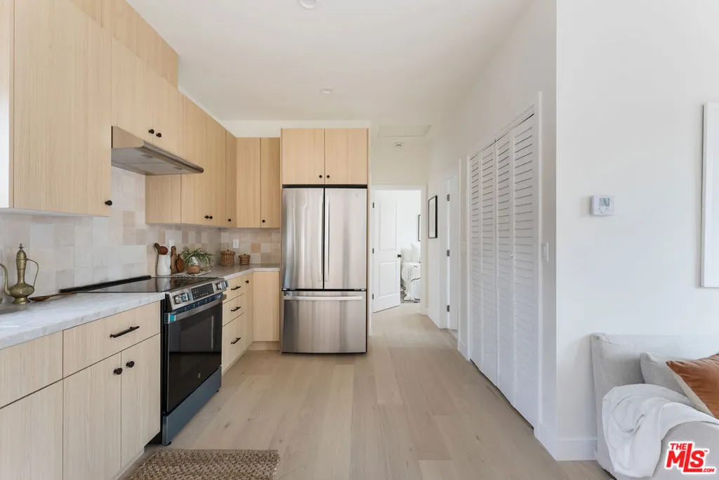 Tucked into a prime pocket of Atwater Village, this newly completed 2026 ground-up residence offers a standalone 2-bedroom, 2-bath home designed for comfortable, modern living. Spanning 862 square feet, the layout balances efficiency with a bright, open feel. Hardwood flooring extends throughout the main living areas, and the kitchen features quartz countertops, new appliances, and refined contemporary finishes. Oversized windows fill the space with natural light, while sliding glass doors from both the living room and primary bedroom open to a generous private outdoor area, ideal for dining, relaxing, or entertaining. Additional highlights include dedicated driveway parking, HVAC, laundry, owned solar panels exclusive to the residence, and an electric water heater for added efficiency. Located near Glendale Boulevard you're moments from All Time, Dune, Proof Bakery, Spina, and the Atwater Village Farmers Market, with convenient access to the Los Angeles River bike path and Griffith Park. A refined new construction offering intentional design, private outdoor living, and dedicated parking in one of Northeast LA's most desirable enclaves.