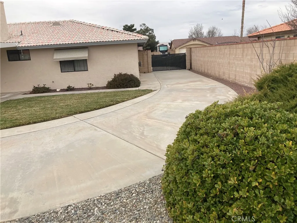 The home includes newer built-in appliances—oven range, microwave—and a brick fireplace in the den. The front and rear yards are spacious, featuring a circular driveway and two driveways leading to the rear yard. An automatic fire-sprinkler system is installed in every room. The property also includes an RV hookup in the backyard.