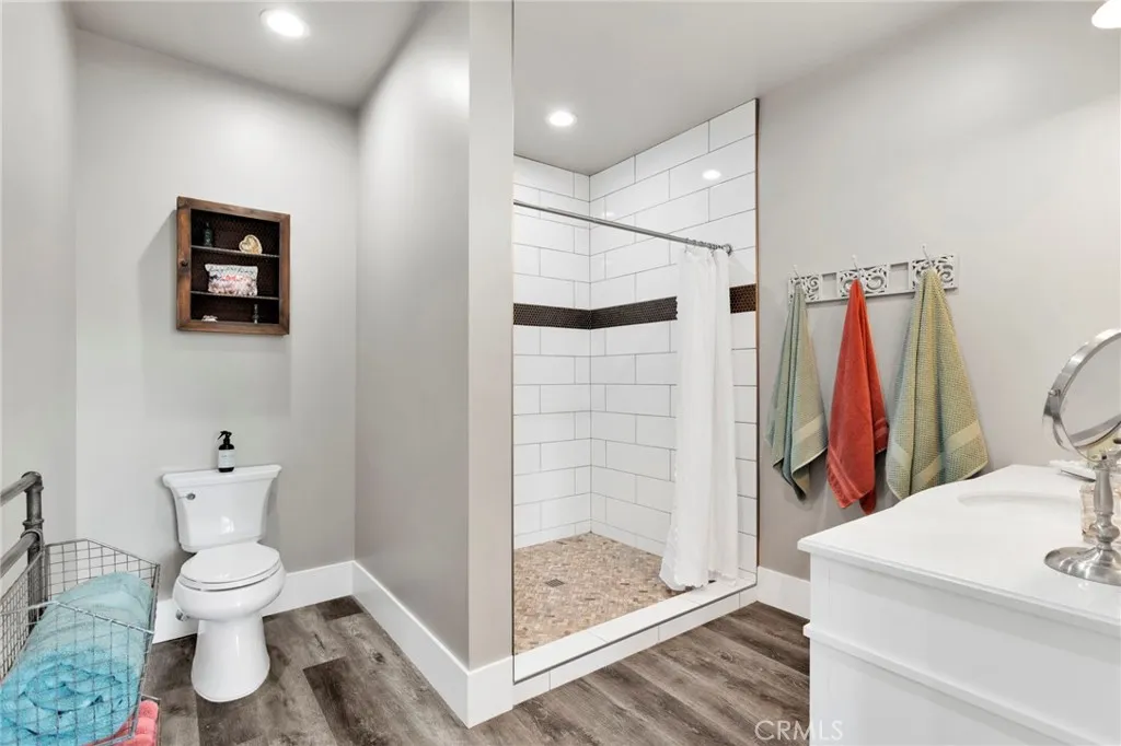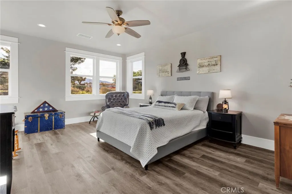Better than new and thoughtfully rebuilt in 2021, this beautiful custom home in Phelan sits on just over 2 acres and is located a short distance to pavement off Goss Road for easy access. A newly poured concrete driveway and electric gate create a welcoming entrance and showcase the quality and care found throughout the property. Offering 2,503 sq ft of living space, the home features high-end finishes and solid craftsmanship throughout. The cozy front porch is a great place to relax and enjoy the mountain views. Inside, the bright open layout is filled with natural light and features 9-foot ceilings, recessed lighting, oversized baseboards, custom window trim, and durable wood-grain waterproof vinyl flooring. The kitchen is the true focal point of the home, designed as a warm and inviting space to gather and entertain. It features an impressive 60-inch commercial-style 8-burner gas range-oven with Z-Line hood, brick backsplash and quartz countertops. A farmhouse enameled cast iron smart divide sink with bridge faucet and ultra-quiet KitchenAid dishwasher add style and function, while modern white cabinetry and a walk-in pantry complete the space. The flexible floor plan offers two oversized primary suites, each with private exterior entrances and ADA-compliant bathrooms with tiled showers and spacious walk-in closets. One suite includes washer/dryer hookups inside the closet. The third bedroom has its own rear entrance, shower, and washer/dryer hookups, ideal for guests or multigenerational living. A powder room sits just off the main living area. Built for comfort and efficiency, the home includes radiant barrier roof sheeting, 2x6 exterior walls with R-19 insulation, interior sound-reducing insulation, Hardie board cement siding, upgraded copper water lines, and an energy-efficient 18 SEER heat pump air conditioning system. A standout feature is the detached 1,893 sq ft, 7-car garage with excellent ADU potential. The middle section is already insulated with finished walls and ceilings, plumbed for water, wired with 220 hookups, and includes a wood-burning stove. With easy access and concrete walkways in place, the space is well suited for conversion into a separate apartment or additional living area while still leaving plenty of garage parking. Located in the desirable Snowline Joint Unified School District, this property offers space, flexibility, and modern construction with quality craftsmanship and attention to detail throughout.