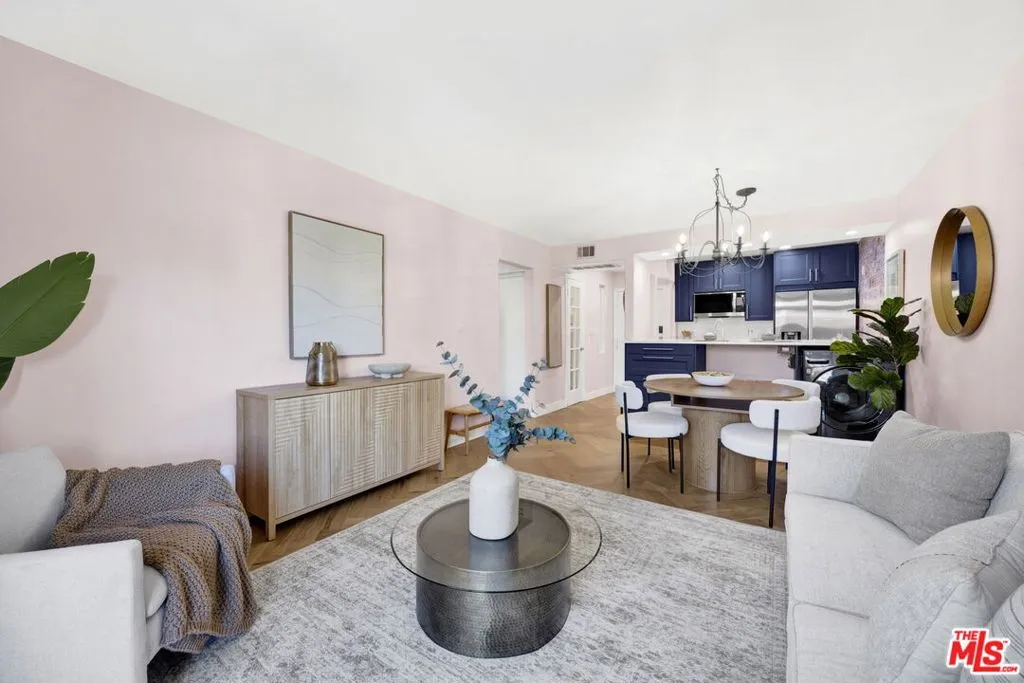 Welcome to this beautifully remodeled 1-bedroom, 1-bathroom condo offering a stylish blend of modern updates and functional design. The open layout is filled with natural light and features herringbone natural-hardwood floors, a convenient study nook, and recessed lighting. The updated kitchen is complete with newer cabinets, stainless steel appliances (refrigerator, dishwasher, microwave, and electric stove), and a reverse osmosis water filtration system. The bathroom showcases Neo-Moorish tile, a modern vanity, and a TOTO toilet with bidet attachments. Additional upgrades include in-unit laundry, new A/C split systems, a designer ceiling fan, and a coffered ceiling in the bedroom. A private balcony provides an outdoor extension of the living space. Located in the heart of Hollywood, with a partial view of the iconic Hollywood Sign landmark, this residence offers walkable proximity to dining, entertainment, and shopping.