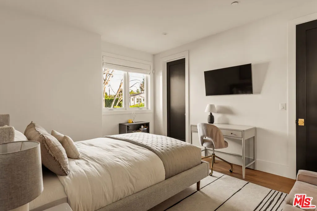 Located South of the Boulevard in one of Sherman Oaks' most coveted neighborhoods, this newer construction modern farmhouse sits on an expansive flat lot and offers 5 bedrooms and 7 bathrooms with thoughtfully curated designer finishes and impeccable craftsmanship throughout. The open-concept main level exudes effortless sophistication, featuring custom woodwork, a statement fireplace, formal dining, large sun filled breakfast area and a refined family room with built-ins and sliding glass doors for seamless indoor-outdoor living. The chef's kitchen is beautifully appointed with custom cabinetry, Wolf and Sub-Zero appliances, an oversized quartz island, butler's pantry, and breakfast nook. A private ensuite bedroom overlooking the sparkling pool, powder room, bar with wine cooler, and mudroom with direct-access two-car garage complete the first floor. Upstairs, the serene primary suite boasts vaulted ceilings, a fireplace, walk-in closet, spa-like bath, with chic toilet closet and private balcony. Three additional ensuite bedrooms provide comfort and privacy, each with proper walk in closets. The resort-style backyard features a pool and spa, built-in BBQ, covered patio, lush and mature landscaping, and a detached pool house with full bath. The home has been upgraded with the Control4 smart home system and a paid-off solar system. Owners have fully hedged and gated the home, enhancing its privacy and security. Located within the highly coveted Dixie Canyon Community Charter School District and just moments from premier dining, shopping, and everything Sherman Oaks has to offer, this exceptional property truly embodies modern luxury living. Truly a turn key property.