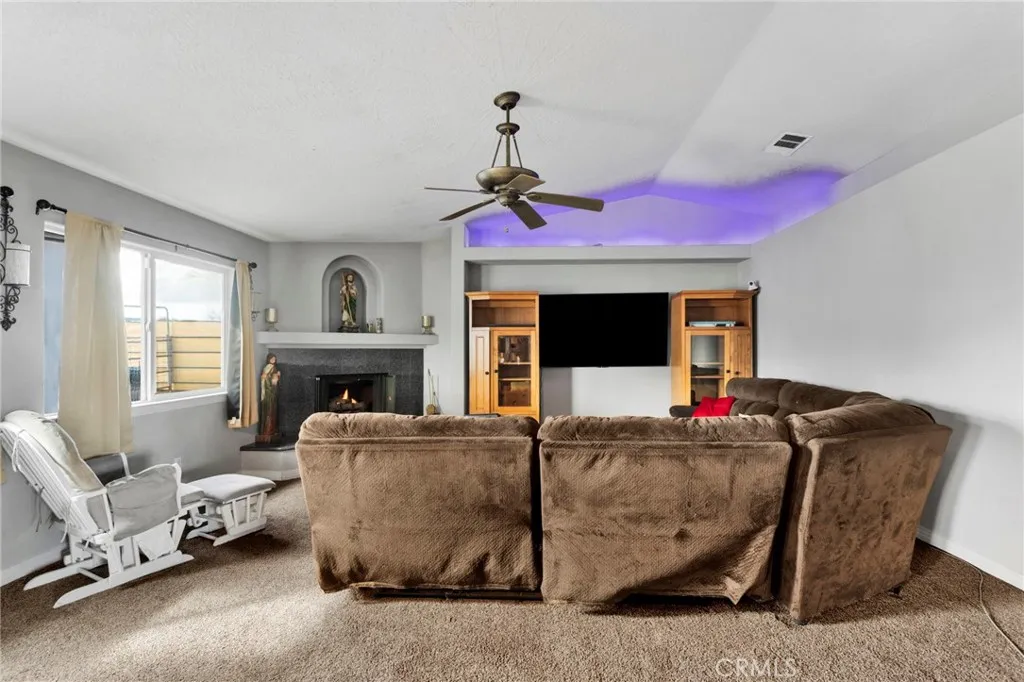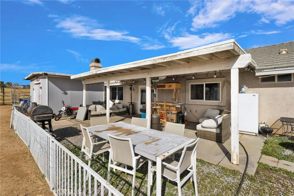 Situated on a full acre! This property features a fully fenced front and backyard, offering privacy and plenty of room to roam. Inside, the open-concept layout seamlessly connects the kitchen, dining, and living areas. The kitchen boasts granite countertops, stainless steel appliances, a convenient breakfast bar, and overlooks the inviting family room anchored by a granite gas fireplace. The primary suite offers comfort and functionality with his-and-hers closets and an en-suite bathroom featuring a double vanity and granite countertops. Both bathrooms and the indoor laundry room have matching granite finishes for a cohesive, upscale feel. Additional highlights to the backyard include RV access, shy of under half an acre, a shed, high-quality water filtration system for exceptional drinking water. Centrally located near the 15 freeway, schools, shopping, and more! This home offers the perfect blend of convenience and comfort.