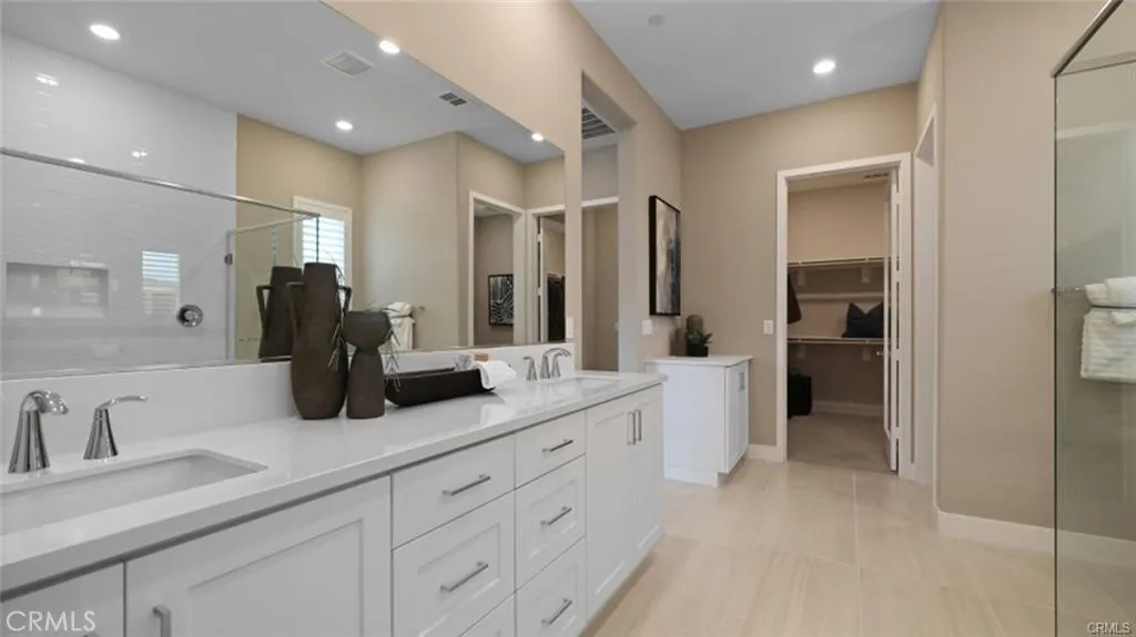 Beautiful Former Model Home in Prestigious 55+ Community in Tesoro Highlands!, 3 Bedroom plus Office, 4 Baths. This beautifully upgraded residence showcases exceptional craftsmanship and designer finishes from top to bottom. Featuring three spacious bedrooms, each with its own en-suite bathroom, walk-in closet, plus an additional guest bath, this home offers both comfort and privacy. Here is an exceptional opportunity to acquire stunning, professionally curated furnishings. All furnishings are available for purchase as a complete package and may be negotiated separately. Enjoy a custom office with built-in cabinetry, a chef-inspired upgraded kitchen with premium appliances including granite countertops, self closing cabinets and drawers, and a separate laundry room for added convenience. The garage is enhanced with custom cabinetry, while professionally designed landscaping graces both the front and backyard. Additional highlights include paid-off solar, tankless waterheater, extended sliding glass doors for seamless indoor-outdoor living, upgraded flooring and baseboards, and countless thoughtful upgrades throughout. Tons of Acitivities including a golfer's dream to have an amazing putting greens, Swimming pool, spa, gym, tennis, pickleball, several putting greens, walking trails, dog park, etc. Tons of Community events from Tai Chi, Craft & Chat, walking group, Game Night, and a wine stroll, beer tasting, pot luck dinners, Plus so much more! This exceptional home is truly move-in ready—don’t miss your opportunity. It won’t last!