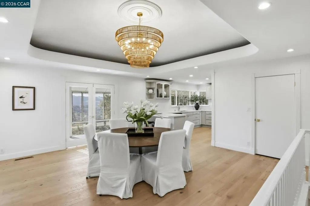 Amazing new price for this wonderful gated estate property with spectacular views of Orinda hills! Situated on a court, this private property is conveniently located close to town and commute routes. The recently refreshed 4579 sqft home boasts a versatile floorplan with wonderful natural light and plenty of space for entertaining and day-to-day living. The striking foyer opens into an elegant living room with high ceiling, fireplace, views and access to the sunroom. The generous dining room is adjacent to the kitchen. The kitchen features custom color cabinetry, Quarts countertops, white tile backsplash and a butler's pantry. The primary suite and two bedrooms & bath are located on the main level. There is a large family room with a fireplace and backyard access at the lower level. The expansive backyard offers different venues, including a lawn, space for play structure/trampoline, gazebos for relaxation, space for gardening and amazing views. Welcome to Orinda, a highly desirable community with award wining schools, open space and natural beauty.