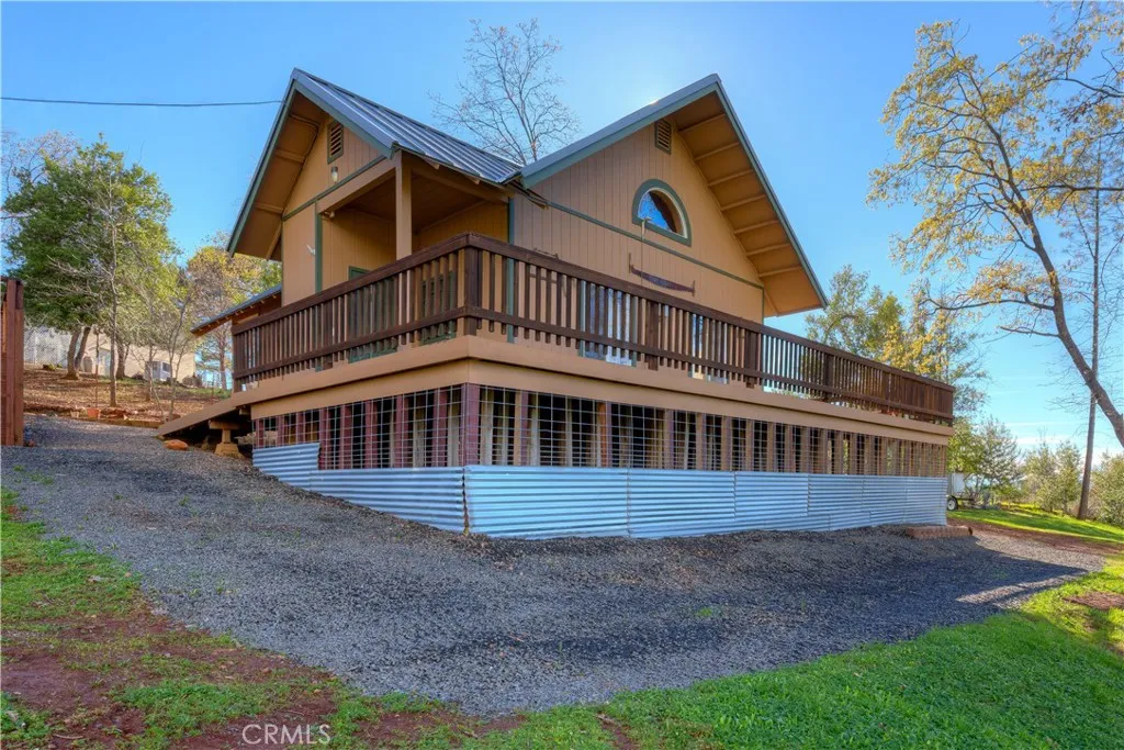 10 minutes from Chico you will find this one of a kind property a private oasis in Paradise. Two homes on 5.19 acres in lower Paradise on a private road with sunset views, gorgeous treed setting and meandering creeks and waterfalls. Located minutes off the Skyway with newer homes in the area. The main home is 1800 sf., 3bdrm - 2.5bath two story Spanish-style with classic tile, custom built in 1979. Large country kitchen with tile countertops and a center island and built in hutch. The living room fireplace has a gas insert with amazing views out every window that capture the natural light and peaceful setting. The upstairs bedrooms each have a ‘Juliet balcony’ to add to the charm. Upgrades include new windows in 2017, carpets and attic insulation in 2019 and new HVAC unit in 2022. Trex decks adorn front and rear of the home with a clay tile roof. The home is made of almost all fire-resistant materials. The fully outfitted ~800 sf guest cabin, built in 2000, has a lifetime metal roof, ten-foot walls, cathedral pine ceilings, a gas fireplace, and a large wrap-around redwood deck. The guest cabin includes multiple well-designed closets and crawl space storage. A new HVAC unit was installed in 2022. Both homes received a high-quality exterior paint job in 2019. The property boasts a gentle slope and walking trails throughout to enjoy the peaceful setting and wildlife - deer, turkeys, squirrels, rabbits, quail and many more critters. There are endless possibilities with the property for the new owners. In todays rental market the guest home would rent for $1500 a month and has its own electric service. Paradise irrigation district water