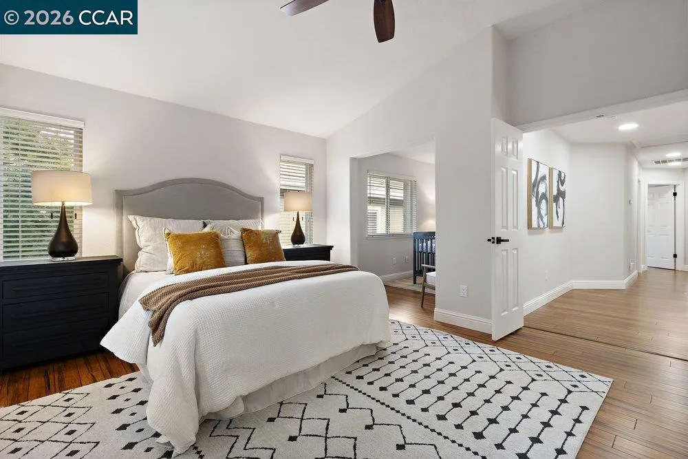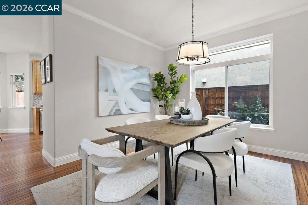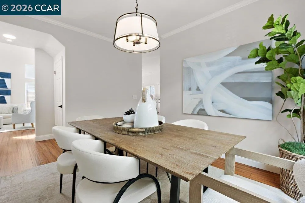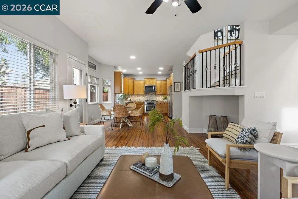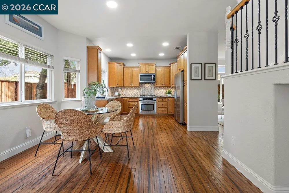Spectacular, light filled home that radiates warmth, cozy and comfortable living. So impressive is the Open, modern kitchen with granite counter tops, stainless appliances and hardwood floors. There is a formal dining room and high ceilings as you enter the living room with a dual sided gas fireplace and gleaming hardwood floors. The family room is perfect for gatherings with the fireplace, views of the yard, and is open to the bay window alcove breakfast area. The Primary suite, boast a walk-in closet and a spacious separate retreat. A peaceful retreat/nursery/office/or exercise space. The incredible 2026 primary bath is gorgeous with soaking tube, large tiled shower, tile floors and double vanity. Besides the primary bedroom suite there are 3 additional bedrooms upstairs. The 2nd floor hall bath and the 3rd full bath, on the main level near the 5 bedroom/office, have both been beautifully renovated with today's features. Amazing condition, custom paint palette, 3 car garage, hardwood floor throughout (except baths/laundry), shows like a model home. Close to Diablo Vista park (via walking trail) with Baseball/soccer fields,play area,volleyball,basketball,"snake walk" & more