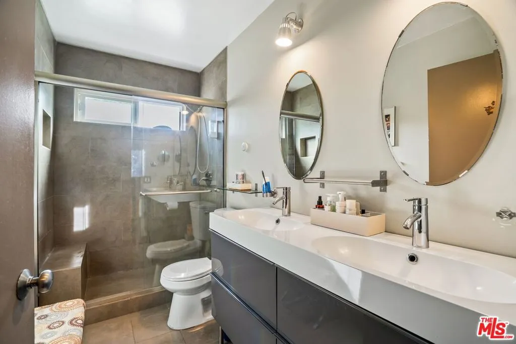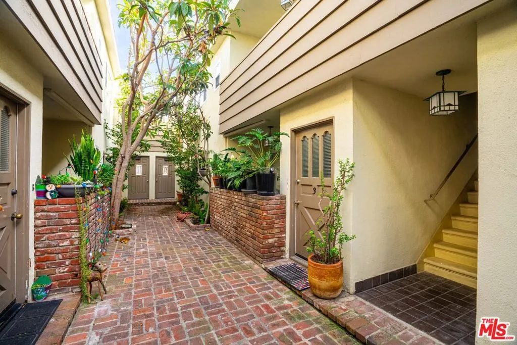 Metropolitan Urban Chic Oasis in Santa Monica! Exclusive controlled-access 14-unit courtyard enclave with lush landscaping. This top floor retreat with serene greenery views. Rich textured engineered wood floors across the entire unit with an expansive living room anchored by a classic brick gas fireplace. There is a seamless transition to the outdoors through elegant French doors to redone full balcony. Architectural depth is defined by elegant crown moldings and recessed lights in all rooms. Substantial full dining room that's capable of housing a full scale table, New grey wood sleek kitchen cabinetry and stainless steel appliances with quartz countertops with beautiful glass tile backsplashes and full granite sink. In-unit full size gas laundry provides ultimate in-home convenience and an updated dual- pane Milgard windows to optimize thermal insulation. Generously sized bedroom scaled to accommodate a dedicated workspace, Redone walk-in shower room with integrated bench seating and double vanity. Secured gated parking with storage and Low homeowners dues.Premier location that balances residential tranquility w/immediate urban access. Perfectly positioned near World-Class Medical hubs St. John's and UCLA. Short distance to UCLA campus and public transportation and Close to Bristol Farms, Whole Foods, Trader Joes and Erewhon