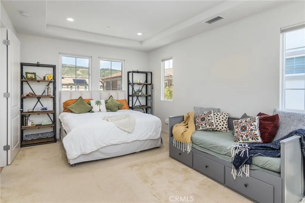 Located behind the gates of Red Oak Retreat in The Canyons’ Elite Point Collection, this exceptional residence offers unobstructed 180-degree views of rolling valleys and surrounding mountains—an awe-inspiring backdrop for everyday living. Step inside a dramatic two-story foyer that opens seamlessly to the expansive great room and dining area, thoughtfully designed for both effortless entertaining and comfortable daily life. The gourmet kitchen is a chef’s dream, featuring a grand center island with breakfast bar seating, abundant counter space, and a spacious walk-in pantry—all positioned to take full advantage of the breathtaking views while cooking, dining, or gathering with guests. Upstairs, a versatile loft/bonus room provides the perfect space for a home office, entertainment lounge, or peaceful retreat. The private primary suite is a true sanctuary, complete with a generous walk-in closet and a spa-inspired en-suite bathroom boasting dual vanities, a soaking tub, and a separate shower. Two additional bedrooms complete the upper level. Beautiful hardwood flooring flows throughout the home, adding warmth and sophistication. On the main level, a thoughtfully designed bedroom with an adjacent full bath offers ideal accommodations for guests or family. This modern home is enhanced with premium upgrades, including owned solar panels, an EV charging station, and high-end interior finishes that elevate every detail. Enjoy resort-style living with exclusive access to a stunning community center featuring a sparkling pool, rejuvenating spa, BBQ areas, cabanas with TVs, a meeting room, and inviting indoor-outdoor seating. Ideally located near a 54-acre community park, The Vineyards at Porter Ranch, top-tier schools, and premier dining and shopping, this home perfectly blends luxury, functionality, and convenience in one of Porter Ranch’s most coveted gated communities.