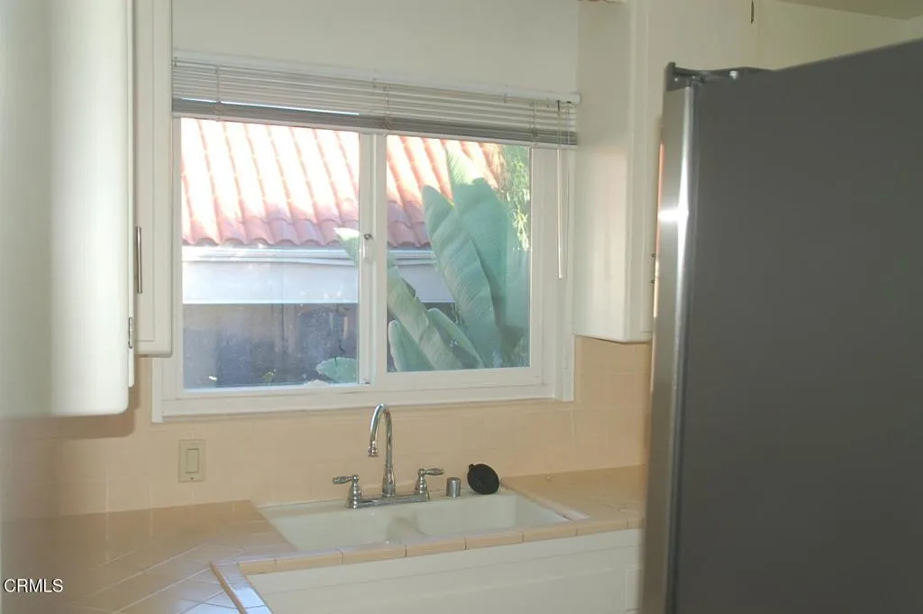 Mid century well maintained building.Upper floor stairs to unit, no elevator to unit entry.Unit features easy care newer engineered flooring, newly painted, large picture windows with blinds.Nice size bedroom west facing, with mirrored closet sliders. Spacious living room, corner window & blindsseparate access door opens to South facing patio.Kitchen offers character original tile tops,4 burner gas cooktop, dish washer, stainless fridge, and 2 nd access door to outside.Dinning Area with pass through counter bar.Hall linen cabinet and storage. Nice size bathroom shower over tub combination.1- assigned covered parking space included. Onsite laundry with locker storage for tenant.newer painted building shows great.looking for applicant fico score over 730this is a no smoking no pet building.
