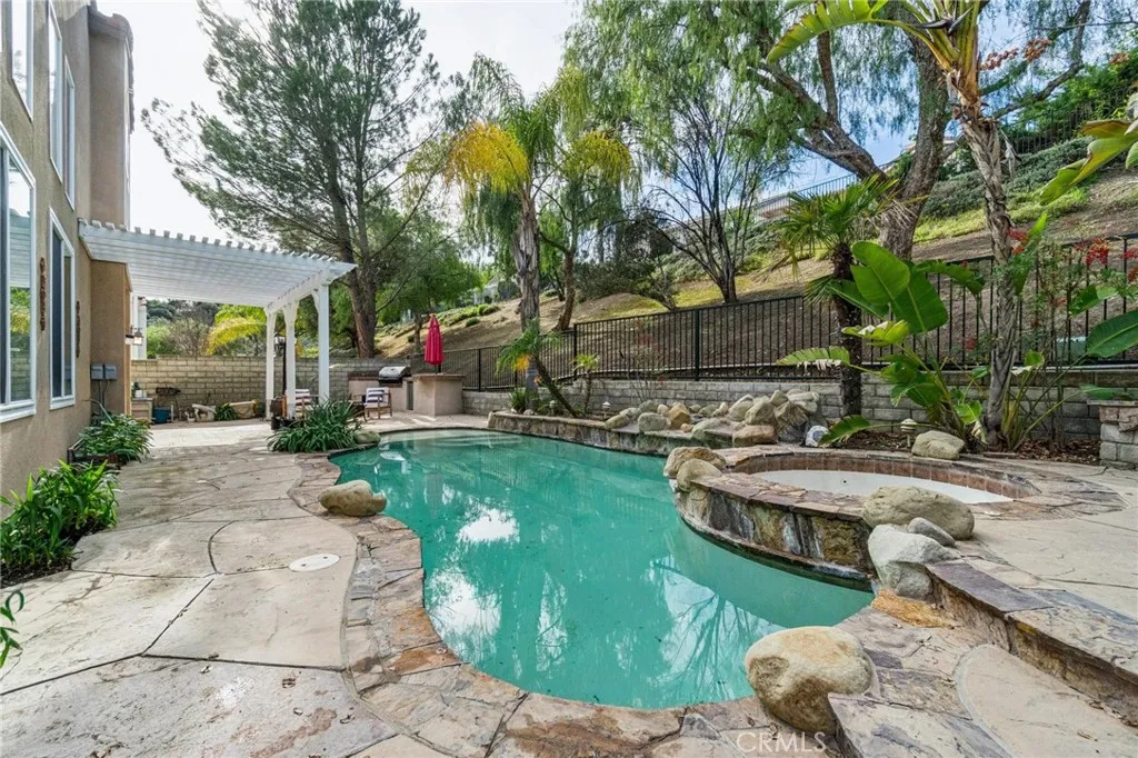 Stevenson Ranch is the setting for this move-in ready 5-bedroom pool home! One of the more popular floorplans with soaring ceilings upon entry, a private bed/full bath down plus an office. 4 more bedrooms upstairs with 3 more full baths offering a true open concept with a livable, functional floorplan. Granite counters in the kitchen, whole house attic fan, crown molding, shutters and blinds. Private yard with pool & spa and a cul-de-sac location. Brand new paint and newer carpet, all in neutral colors. Close to Richard Rioux Park and award-winning Stevenson Ranch Elementary (2023 CA Distinguished School Award). No Mello Roos, a low HOA & a lot of home for the money in one of the most prestigious neighborhoods in town!