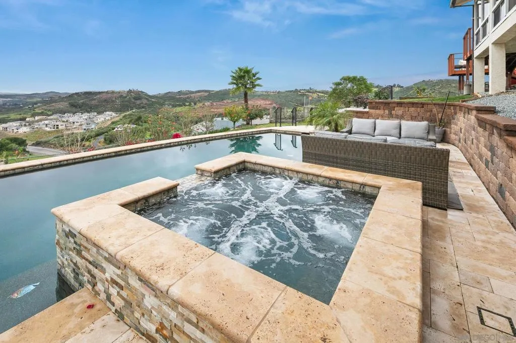 Welcome home to this stunning West-facing estate with panoramic views and resort-style grounds. Enjoy sweeping views & breathtaking sunsets every evening, where acres of open space create a rare sense of privacy and serenity. A veranda spans the entire home, providing an ideal setting for sunset dining, entertaining, or simply enjoying views that stretch for miles. The outdoor spaces are a true oasis, featuring a saltwater pool w/ spa, a fire pit, an outdoor pizza oven, a 4-hole putting green, and ample space for endless possibilities, including planting your own vineyard. A charming children’s playhouse and playground add whimsy, while mature landscaping, 22+ fruit trees, and vegetation create an environment perfect for sustainable living. Inside, the open floor plan encompasses 3,106 square feet with 3BD/3.5BA, highlighted by hardwood floors and views from every window. The large primary bedroom retreat offers peaceful views and a spacious walk-in closet. The custom kitchen is designed for both function and inspiration, featuring a large center island, granite countertops, and stainless steel appliances, ideal for creating culinary delights and entertaining. Solar is paid. An electric stair-chair provides convenient access from home to garage. $200K in home improvements has been invested into the property, enhancing comfort, quality, and long-term value. Across the valley is the luxury Cal-a-Vie Health Spa and Vista Valley Country Club with an 18-hole championship golf course. Experience the magic of this one-of-a-kind oasis. Supplement: The property is a productive and picturesque retreat featuring an extensive collection of mature fruit trees and edible landscaping, including: Citrus: 1 kumquat, 1 tangelo, 1 Valencia orange, 2 additional orange trees, 1 grapefruit, and 2–3 tangerine trees, Avocado: 4 trees (multiple varieties), Stone Fruit: 2 peach trees and 2 nectarine trees, Orchard Trees: 2 cherry trees and 4 apple trees, Specialty Plants: 4 blueberry bushes and 2 Arabica coffee plants. A charming hibiscus promenade winds through the backyard, bursting with tropical color and fragrance. Outdoor enhancements include a saltwater pool and spa, fire pit, outdoor pizza oven, new 4-hole putting green, children’s playhouse and playground, new redwood fencing, and new exterior house lighting. A previously hidden front-yard paver patio was discovered and rebuilt features mountain and garden views. A new blacktop driveway with sealer enhances curb appeal, and neighbors along Hoxie Ranch Road collectively repaved the entire road from Gopher Canyon Road. A spacious bonus room adds valuable flexibility to the home, ideal for cozy movie nights, a creative studio, or a comfortable work-from-home space. Major system and infrastructure upgrades include an updated main electrical panel, an updated pool sub-electrical panel to accommodate a Pentair heat pump pool heater, a new pool electrical panel, and the installation of a 1½-inch high-pressure fire line. A new 36-station drip irrigation system services the extensive landscaping. Interior and mechanical upgrades include stair-chair install from home to garage, new hardwood floors in two bedrooms, new kitchen appliances, a new fireplace hearth, five new ceiling fans, and extensive HVAC improvements, including a recently replaced two-zone HVAC compressor and air handler system, plus the addition of a new Trane heat pump HVAC compressor for enhanced efficiency and comfort. The home is also equipped with a Vivint security system with exterior security cameras monitoring 360 degrees around the home. Solar panels are fully paid for, offering long-term energy savings. This family estate awaits, and the loving touches that will make it your next home. There is much, much more to see.